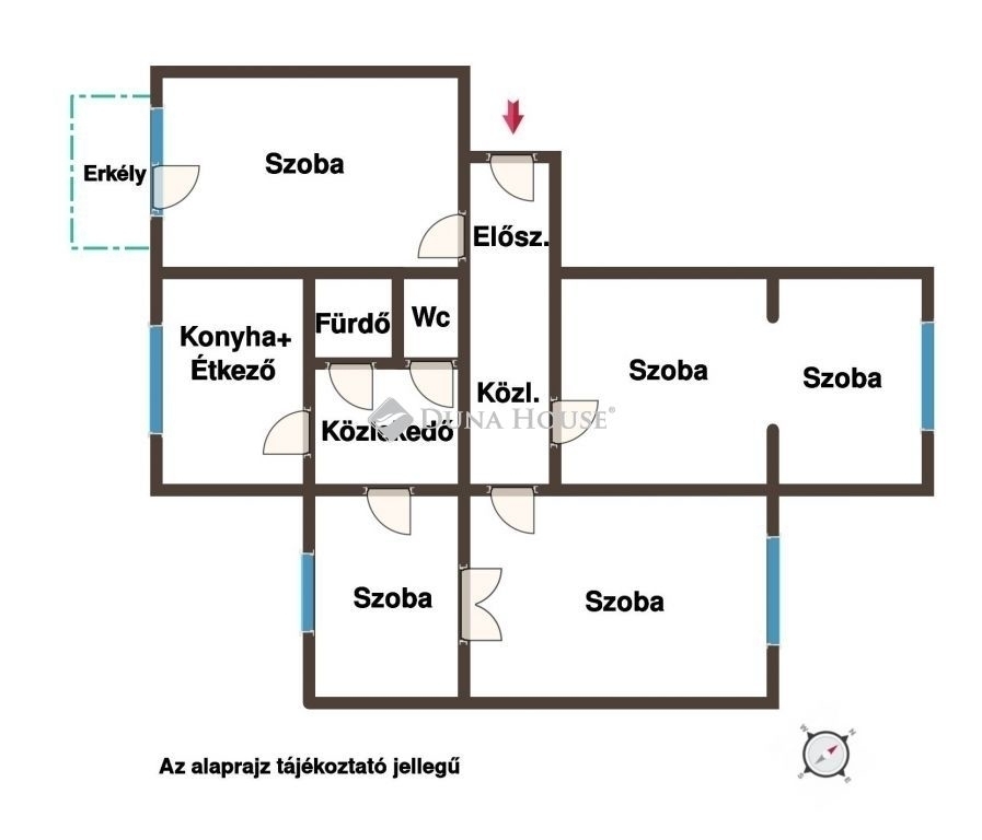 A lakás elosztása rendkívül praktikus: nappali, 4 külön nyíló szoba, konyha, fürdőszoba, WC és erkély tartozik hozzá. A padlók jó állapotúak, ugyanakkor az ingatlan kiváló lehetőséget biztosít arra, hogy új tulajdonosa saját ízlésére alakítsa ki modern otthonát.