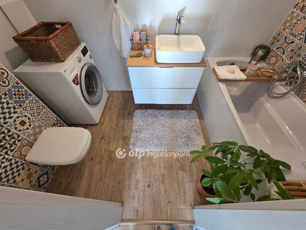 -Fürdő: minőségi burkolatok, beépített WC, padlófűtés, automata szellőző