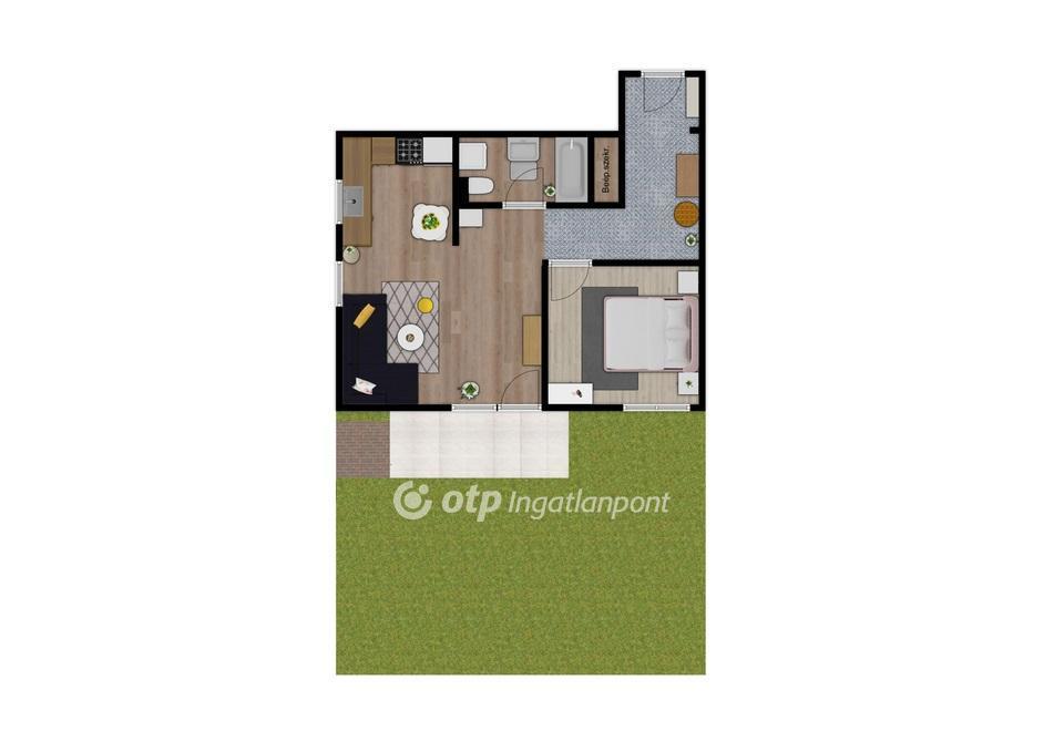 -Alapterület: 48 m2 lakótér + 5 m2 fedett terasz + 45 m2 saját kert