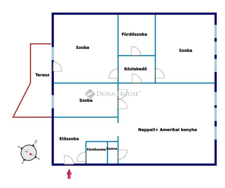 - nappali + amerikai konyha + 3 szoba
