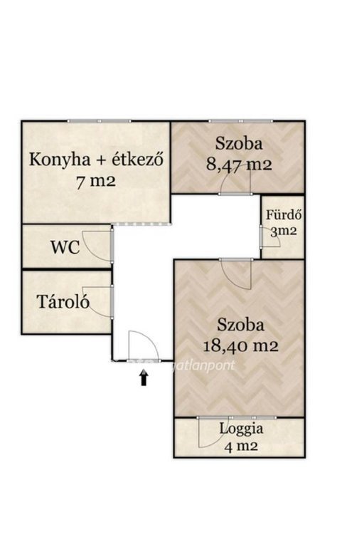 - Saját loggia, utcai nézettel