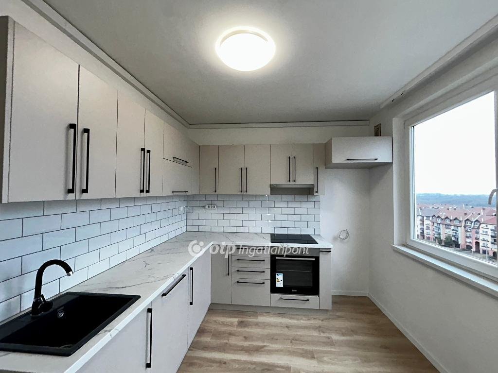 A csodás új konyhabútorba modern, fekete szaniterek, sütő, főzőlap, elszívó és mosogató gép is beépítésre került.