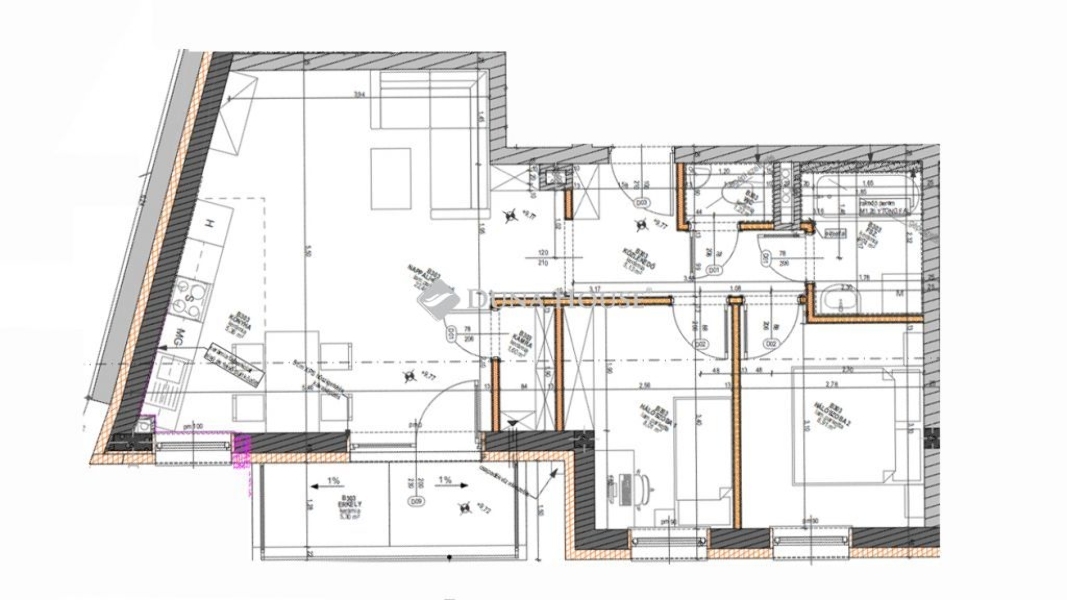 Ez a lakás az épület 3.-ik emeletén helyezkedik el, 60 nm, nappali + 2 szobával, 5 nm erkéllyel