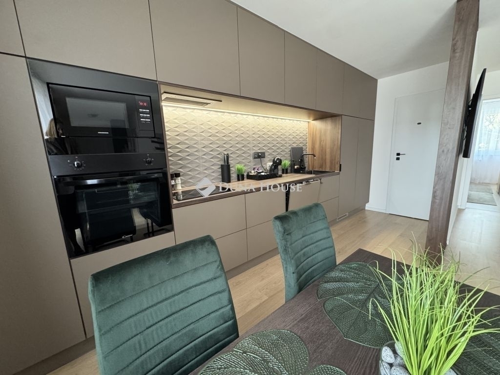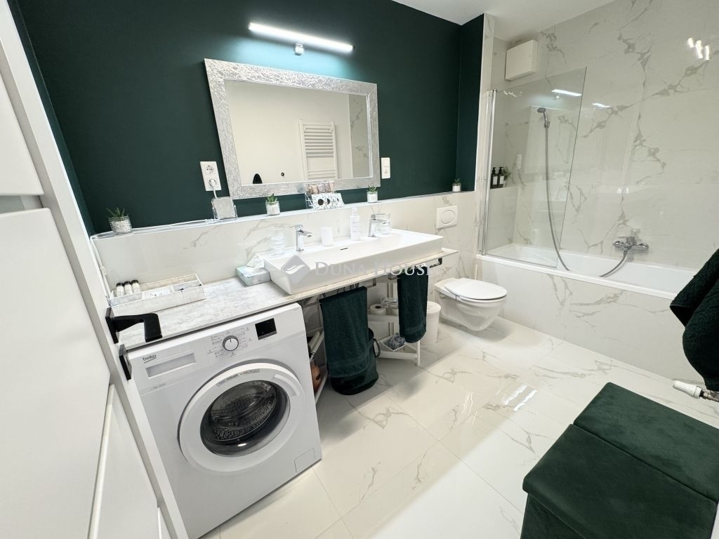 - helyiségei: minőségi konyha beépített gépekkel és kamrával, kádas fürdőszoba dupla mosdóval, külön vendégmosdó, gardrób és beépített szekrény, 2 erkély