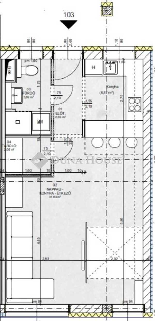 Pinceszinten terempakolók, földszinten irodák, üzletek, míg az első és második emeleten 7-7 lakás, addig a 2.-ik emeleten kettő penthouse kerül kialakításra.
