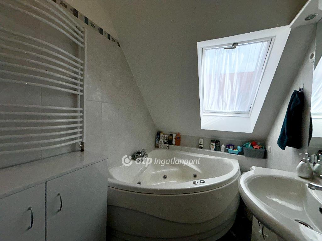 * Hidromasszázs káddal szerelt fürdőszobában és a WC-ben is egyedileg készíttetett bútorok takarják a szerelvényeket.