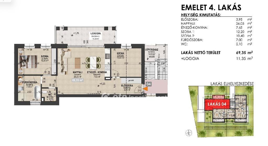 - Lakás 69,35 m2 + 11,35 m2 Loggia