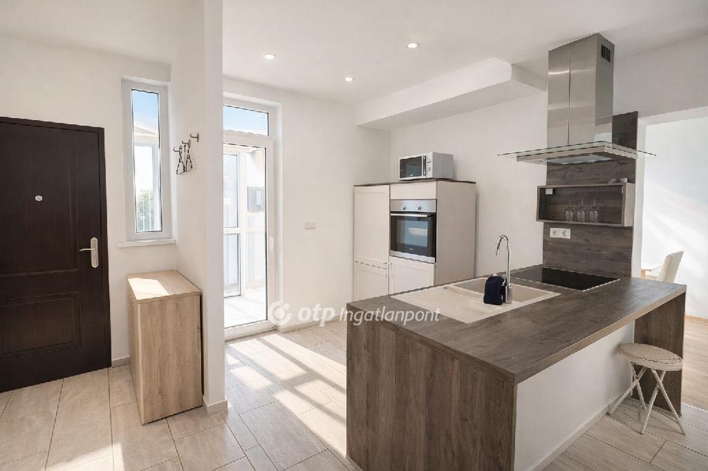 A korszerű, gépesített konyha modern, beépített bútorzattal került kialakításra, amelyhez egy tágas, több fő kényelmes befogadására alkalmas étkező kapcsolódik, így az otthon nemcsak praktikus, hanem ideális helyszíne lehet családi és baráti összejöveteleknek is.