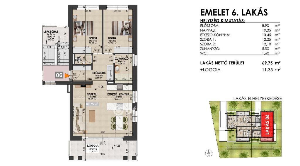 - Lakás 69,75 m2 + 11,35 Loggia