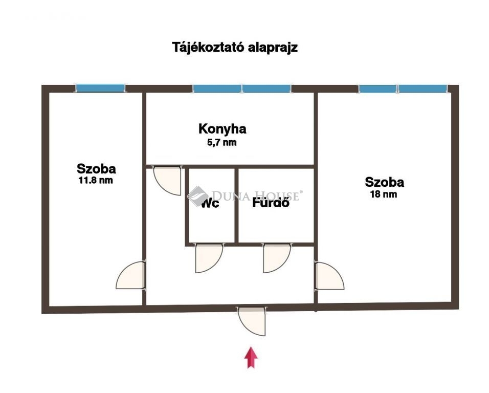 A két szoba 18 és 12 nm, napfényesek, jól bútorozhatók. A fürdő és a WC külön van, ami a mindennapokban kifejezetten kényelmes. Az előszobában kis gardróbszekrény segít a tárolásban.