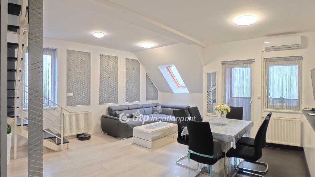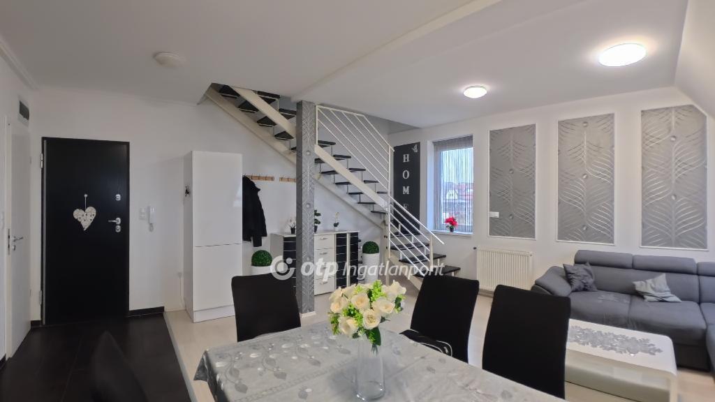 Heves vármegye, Eger, Bercsényi Miklós utca, 77 m2-es, modern, újszerű állapotú lakás eladó. A 2019-ben épült, belső kétszintes ingatlan egy szigetelt, liftes épület ötödik emeletén helyezkedik el. Amerikai konyhás nappali, két hálószoba, fürdőszoba/WC, különálló WC, közlekedő és loggia alkotják. Hőszigetelt ablakai műanyagok, illetve a tetősík ablakai fából készültek. Fűtéséről cirkó gázkazán gondoskodik radiátorok segítségével. A komfortérzetet a nyári melegben klímaberendezés növel. Fiatalos, jó elosztású, élhető ingatlan, mely ideális életteret biztosít egyedülállónak, fiatal párnak, gyermekes családnak is. Befektetésként is jó döntés, hiszen a mérete és gazdaságos fenntartása miatt is jól kiadható lakás. Felkeltette érdeklődését az ingatlan? Győződjön meg személyesen is a leírtakról! Ingatlanirodánk ügyvédi háttérrel, CSOK plusz, babaváró hitel, valamint kamatkedvezményes hitel ügyintézésével támogatja ügyfelei ingatlanvásárlását! Hibás hirdetés bejelentése