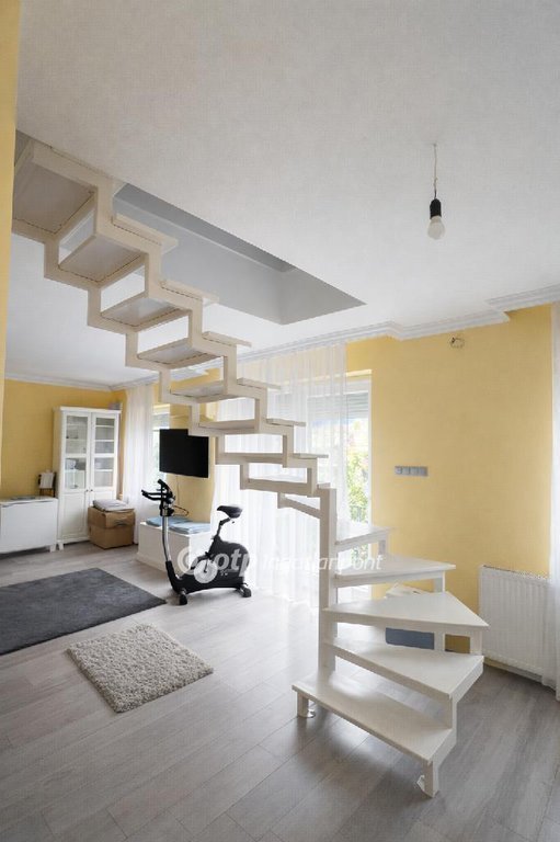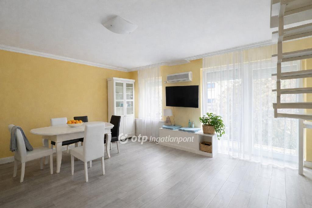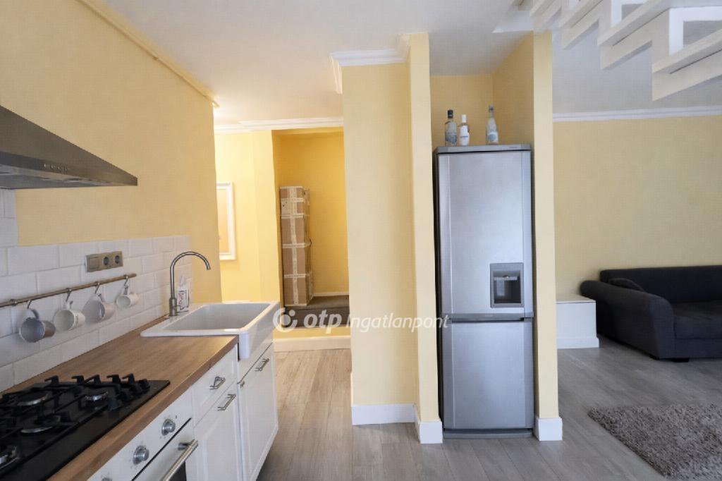 Az ingatlan alsó szintjén egy tágas, világos amerikai konyhás nappali?étkező került kialakításra, amely közvetlen kapcsolatban áll az erkéllyel, így a lakótér egész nap természetes fényben úszik, valamint ezen a szinten kapott helyet egy praktikus, zuhanyzós fürdőszoba is, amely a mindennapi használat során rendkívül kényelmes megoldást nyújt.