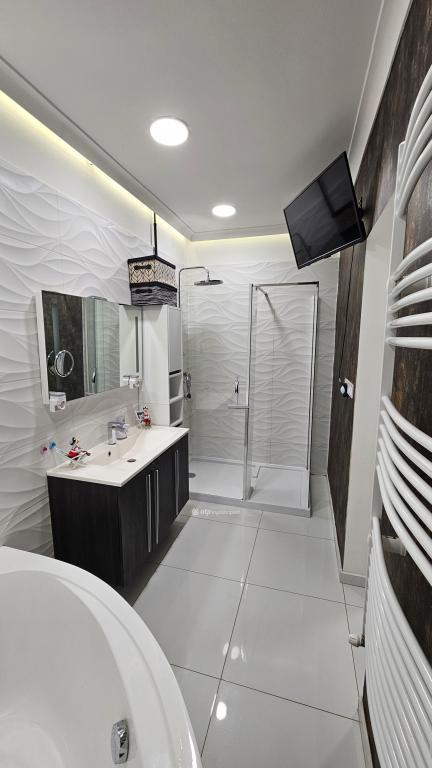 Heves megye, Almagyar városrész, 128/108 nm-es, jó állapotú, örökpanorámás (Eged-hegy), duplakomfortos, REZSIMENTES lakás eladó. A belső kétszintes ingatlan egy 2021-ben átadott, ytong falazatú (50 cm), háromlakásos sorház első emeletén helyezkedik el. A bejárat és az előszoba a földszinten található. Az emeleten amerikai konyhás nappalit, két hálószobát, fürdőszobát (sarokkáddal és zuhanyzóval), WC-t, háztartási helyiséget, közlekedőt és két erkélyt (16 nm, 7 nm) alakítottak ki, míg az idei évben beépített tetőtérben három szoba, fürdőszoba és közlekedő kapott helyet. A lakás saját használatú udvarral/kerttel rendelkezik, melyet a nappaliból nyíló erkélyről, lépcsőn közelíthetünk meg. Az ingatlan energiaellátását napelemek biztosítják, költségmentessé téve a fűtést és az összes elektromos készülék használatát is. A fűtésről elektromos kazán gondoskodik radiátorok segítségével, a komfortérzetet hűtő-fűtő klímák (3,5 kW) növelik. A meleg vízellátást villanybojler biztosítja. Háromrétegű műanyag ablakai redőnnyel szereltek. A lakáshoz, négy autó parkolását biztosító nyílt beállót alakítottak ki, melyből kettő fedett. Méretének, kialakításnak és elhelyezkedésének köszönhetően az ideális otthon lehetőségét kínálja többgyermekes család számára. Megegyezés szerint, a vételárba, kisebb lakás beszámítására van lehetőség. Amennyiben felkeltették érdeklődését a leírtak, egyeztessünk szóban egy megtekintés lehetőségéről! Ingatlanirodánk ügyvédi háttérrel, babaváró hitel, CSOK plusz, valamint kamatkedvezményes hitel ügyintézésével támogatja ügyfelei ingatlanvásárlását! Hibás hirdetés bejelentése