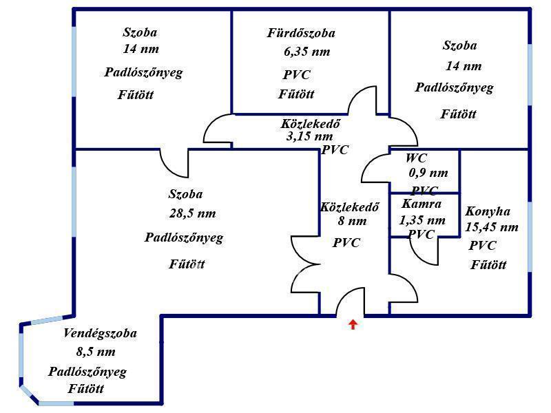 A lakás külső nyílászárói hőszigeteltek, dupla üvegezéssel fából, a belső nyílászárók műanyagból készültek, a szobák padlószőnyeg a többi helyiség PVC burkolatot kapott.