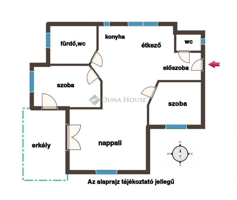 Az ingatlan nettó 69 nm-es (+erkély), nappali+2 hálószoba, tágas étkező és konyha, fürdőszoba wc-vel, külön vendég wc és előszoba, valamint erkély kialakítású, ahova a nappaliból és az egyik hálószobából is ki lehet jutni. A konyhában egyedi tervezésű bútor és minőségi gépek lettek beépítve, melyek a vételár részét képezik. A lakás gazdaságos fenntartású, tehermentes, önálló helyrajzi számmal rendelkezik, jogtiszta.