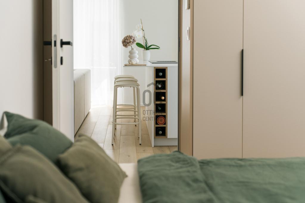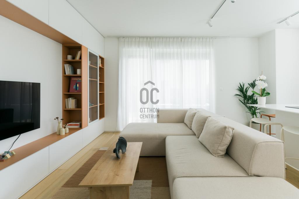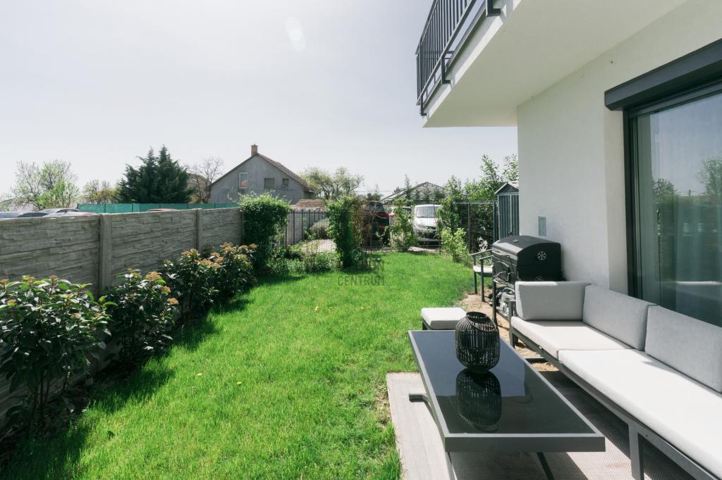 ÉRD PARKVÁROSBAN 62 m2-es, amerikai konyha + 2 szoba, terasszal saját kertrésszel, foöldszinti, exkluzív designlakás teljes bútorzattal, felszíni kocsibeállóval, azonnal költözhetően eladó!