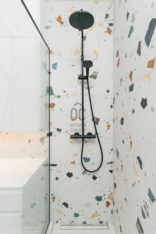 -Letisztult, elegáns fürdőszoba és külön WC