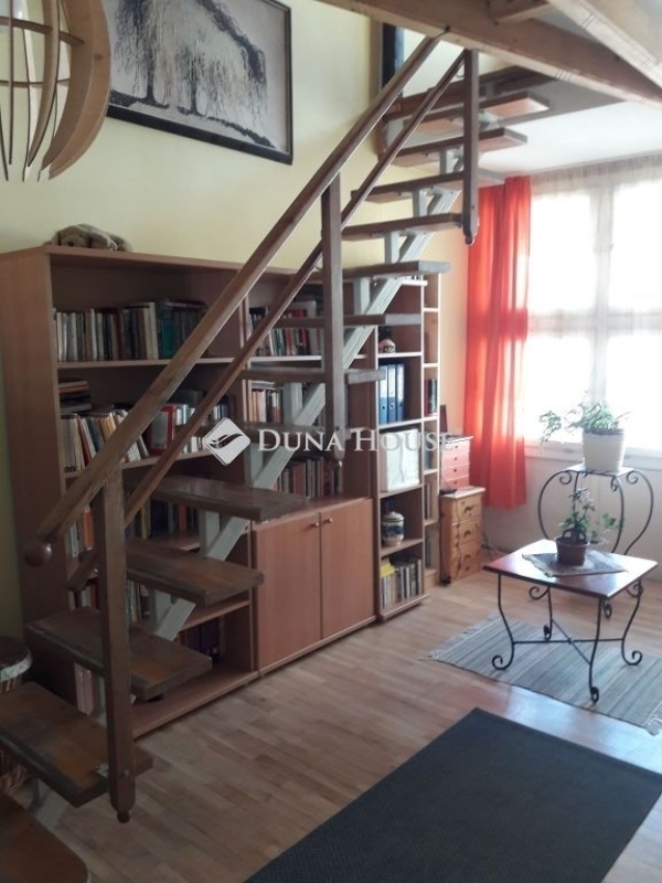 Kiváló lehetőség fiatal családosoknak vagy tágas otthont keresőknek!Eladó Esztergom belvárosában egy 89 m² alapterületű, kétszintes, világos, belső kétszintes, tetőtéri lakás, amelyhez további ~30 m² beépíthető padlástér is tartozik.A lakásból páratlan panoráma nyílik a Szent Tamás-hegyre és a Bazilikára, a másik oldalról pedig a Széchenyi térre.Az ingatlan tehermentes és azonnal költözhető.ElrendezésAz alsó szinten:előszobakonyha és étkezőkamragardróbfürdőszoba16 m²-es hálószobatágas nappali (jelenleg háló- és dolgozórészként is funkcionál)A felső szinten:nyitott galériakülön szobaWC (igény szerint fürdőszobává alakítható)A lakás elrendezése praktikus és családbarát, akár egy 16 m²-es tetőterasz kialakításának lehetőségével.Műszaki jellemzők és extrákmagas belmagasságegyedi fűtésrendszer (nem távfűtés!)Stiebel Eltron hőtárolós kályhákkülön vízóra hideg- és melegvízreFolyamatosan újították az elmúlt másfél évben. Ami már megvalósult: festés, szaniter-csere, parketta csiszolás, ablakcsere.A lakás a 4. emeleten található (lift nincs, ahogyan a belvárosi 4 emeletes házakban jellemzően sehol sem).Környék és közlekedésKözponti elhelyezkedésének köszönhetően minden karnyújtásnyira: buszmegállók, posta, orvosi rendelők, boltok és szolgáltatások pár perc sétával elérhetők.Parkolás a környező utcákban és a közeli nagy parkolóban lehetséges, helyi lakosoknak ingyenesen.Egyedülálló adottságokkal rendelkező, tágas, világos otthon Esztergom legjobb részén. Ilyen méretű lakás ritkán elérhető a belvárosban!