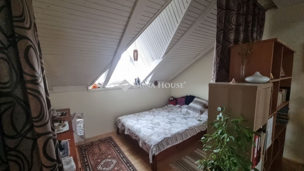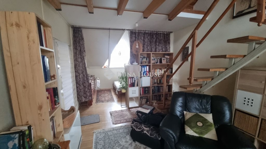 Világos, panorámás, kétszintes lakás eladó Esztergom belvárosában!Kiváló lehetőség fiatal családosoknak vagy tágas otthont keresőknek!Eladó Esztergom belvárosában egy 89 m² alapterületű, kétszintes, világos, belső kétszintes, tetőtéri lakás, amelyhez további ~30 m² beépíthető padlástér is tartozik.A lakásból páratlan panoráma nyílik a Szent Tamás-hegyre és a Bazilikára, a másik oldalról pedig a Széchenyi térre.Az ingatlan tehermentes és azonnal költözhető.ElrendezésAz alsó szinten:előszobakonyha és étkezőkamragardróbfürdőszoba16 m²-es hálószobatágas nappali (jelenleg háló- és dolgozórészként is funkcionál)A felső szinten:nyitott galériakülön szobaWC (igény szerint fürdőszobává alakítható)A lakás elrendezése praktikus és családbarát, akár egy 16 m²-es tetőterasz kialakításának lehetőségével.Műszaki jellemzők és extrákmagas belmagasságegyedi fűtésrendszer (nem távfűtés!)Stiebel Eltron hőtárolós kályhákkülön vízóra hideg- és melegvízreFolyamatosan újították az elmúlt másfél évben. Ami már megvalósult: festés, szaniter-csere, parketta csiszolás, ablakcsere.A lakás a 4. emeleten található (lift nincs, ahogyan a belvárosi 4 emeletes házakban jellemzően sehol sem).Környék és közlekedésKözponti elhelyezkedésének köszönhetően minden karnyújtásnyira: buszmegállók, posta, orvosi rendelők, boltok és szolgáltatások pár perc sétával elérhetők.Parkolás a környező utcákban és a közeli nagy parkolóban lehetséges, helyi lakosoknak ingyenesen.Egyedülálló adottságokkal rendelkező, tágas, világos otthon Esztergom legjobb részén. Ilyen méretű lakás ritkán elérhető a belvárosban!
