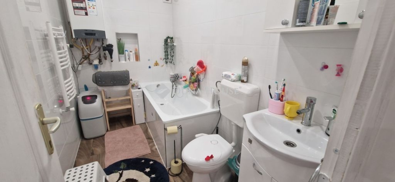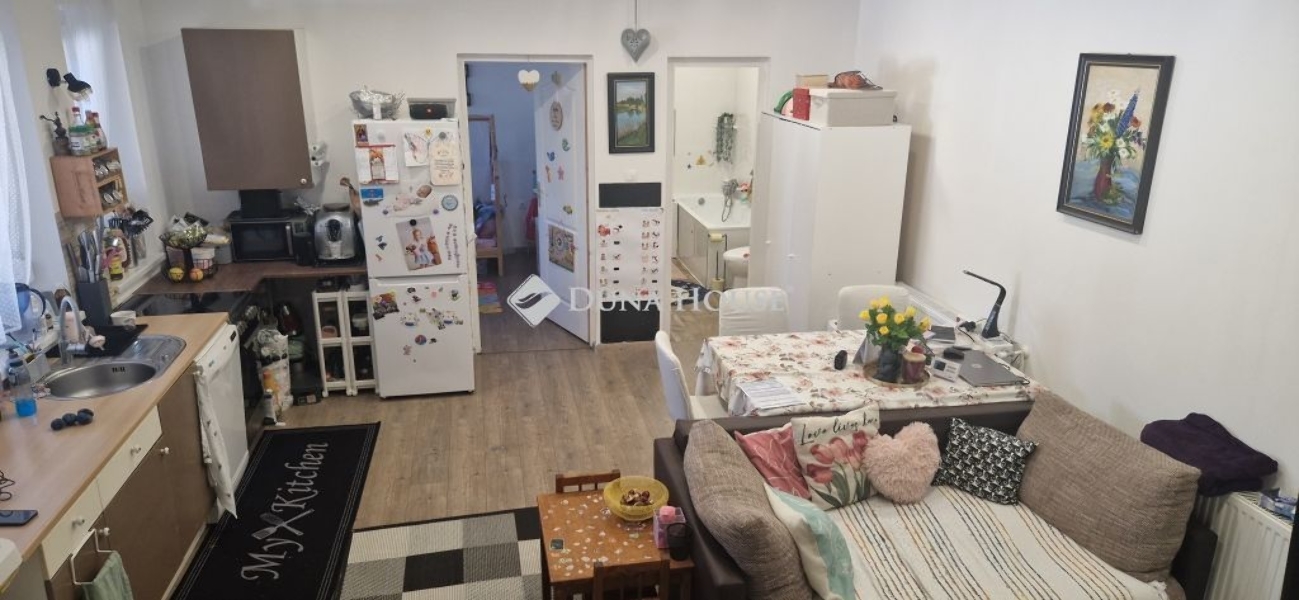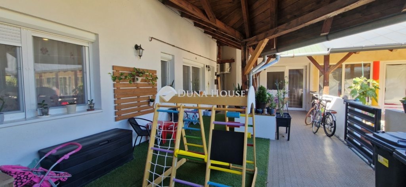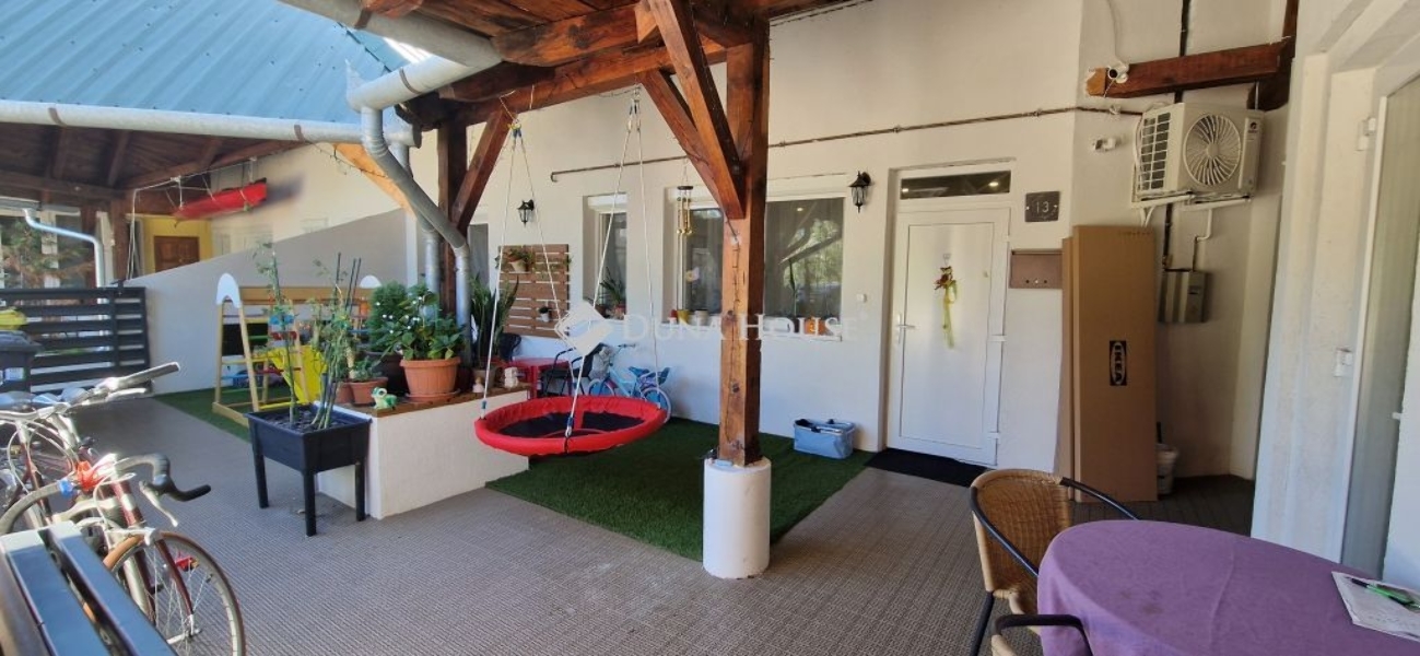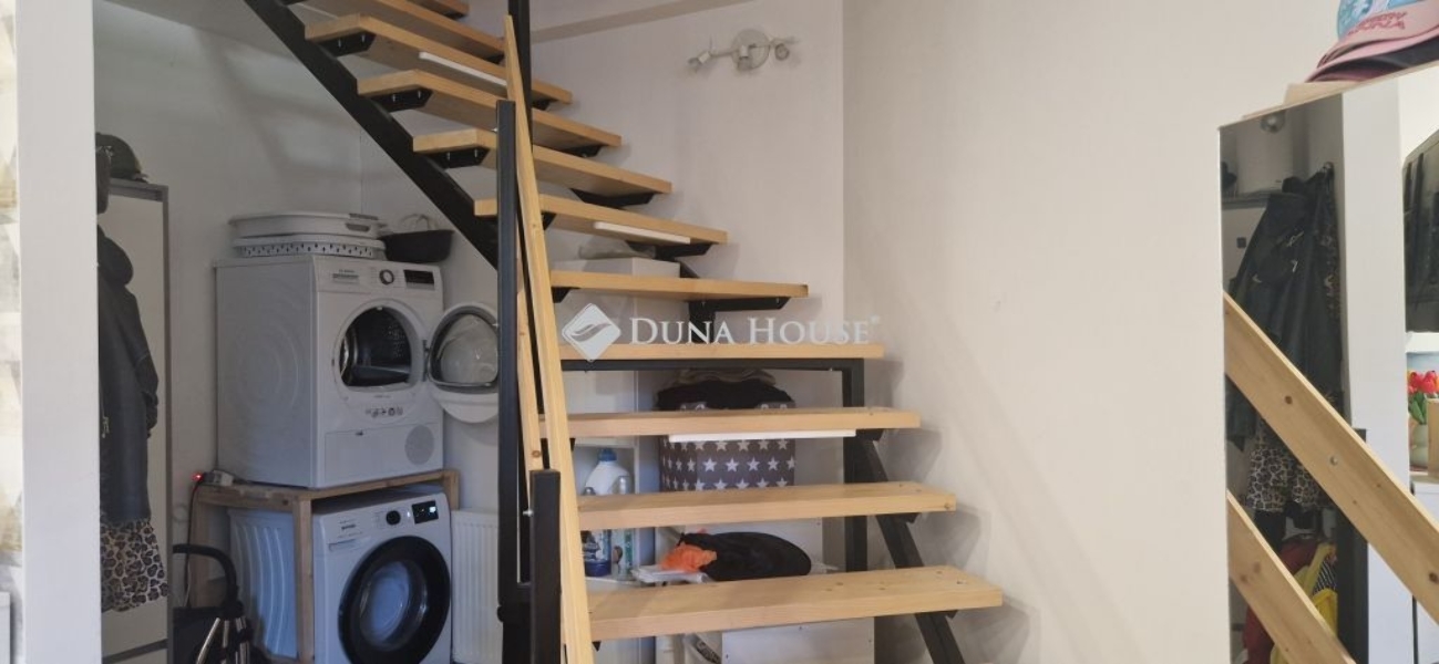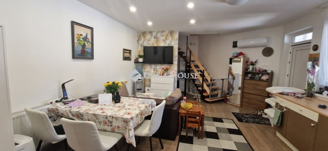 A belső kétszintes, 100 nm-es lakás elosztása: alsó szinten konyha-étkező-nappali, fürdőszoba- wc, hálószoba, az emeleti szinten, 2 hálószoba, világos, tágas nappali, fürdőszoba-wc, található. A lakáshoz egy 25 nm-es fedett terasz is tartozik. Az ingatlan 2023-ban teljeskörű felújítást végeztek. A lakásban minden közmű megtalálható.