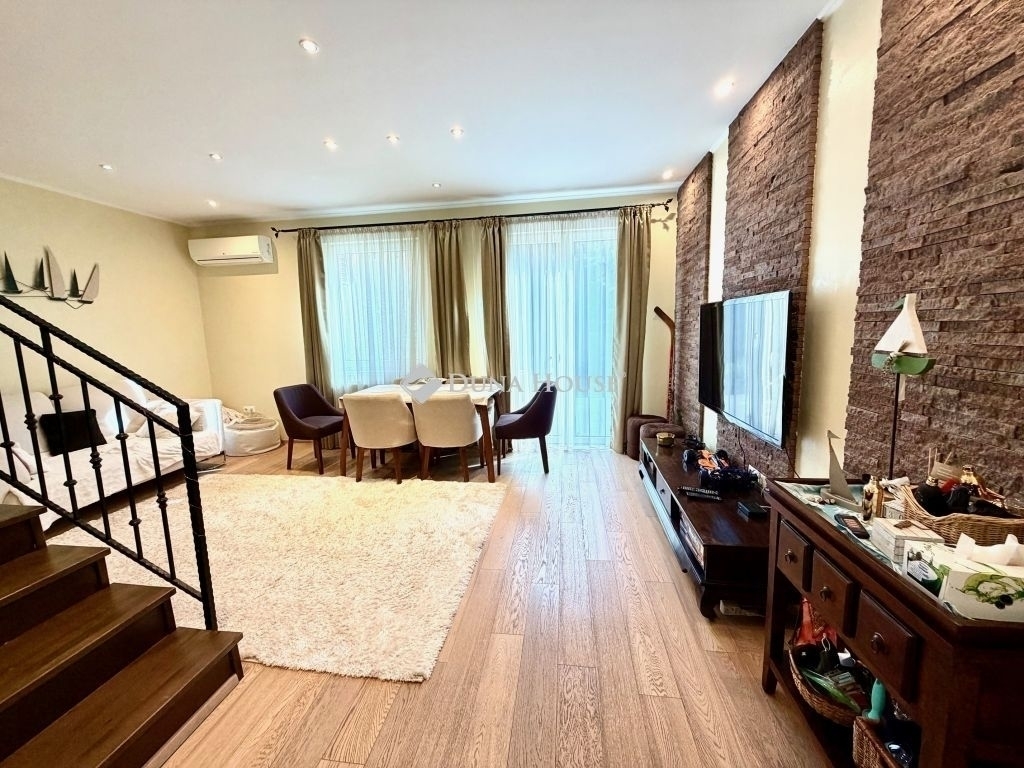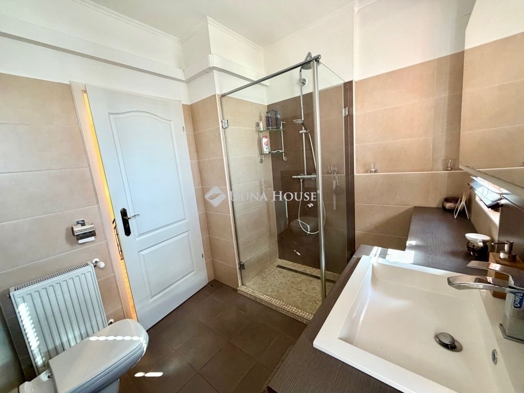 Fótliget lakópark a prémium életstílus otthona!Eladó egy exkluzív sorházi gyöngyszem Fótligeten!Fótliget zárt, őrzött, igényes lakóparkja a minőséget képviseli itt kizárólag prémium kategóriás ingatlanok találhatók. Ebben a környezetben kínáljuk megvételre ezt a 120 m²-es, három hálószobás, magas műszaki tartalmú sorházi otthont, amely tökéletes választás azok számára, akik nem szeretnének kompromisszumot kötni.A lakópark saját játszótérrel, rendezvényekkel és összetartó közösséggel rendelkezik. A busz közvetlenül a kapunál áll meg, gyors kapcsolatot biztosítva a város irányába.Elegáns terek, átgondolt kialakításTágas nappali étkező-konyhával, közvetlen kert- és teraszkapcsolattal3 külön nyíló hálószoba10 m²-es terasz + erkély az egyik hálóbólZuhanyzós fürdőszobaIntim, örökzöldekkel határolt privát kertFűtött szaletli egész éves, exkluzív kerti élményekhezAutomata öntözőrendszerMűszaki tartalom és kényelem felső szintenSaját garázs + fedett beállóElektromos kapuRiasztó- és kamerarendszerMinden helyiségben külön légkondicionálóNapelem rendszer modern, energiatudatos megoldásEz az ingatlan nem csupán egy sorház, hanem egy biztonságos, zöld és presztízsértékű élettér Fótliget egyik legjobb részén.Azoknak ajánljuk, akik a nyugalmat, a minőséget és a prémium környezetet keresik kompromisszumok nélkül. Hibás hirdetés bejelentése