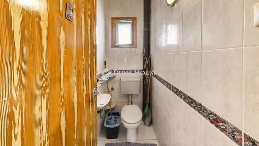 A földszinten 70,4 m² lakóterület, jelenleg egy nappali, egy szoba, egy étkező, egy konyha és fürdő és wc, meg egy lodzsa kapott helyett.