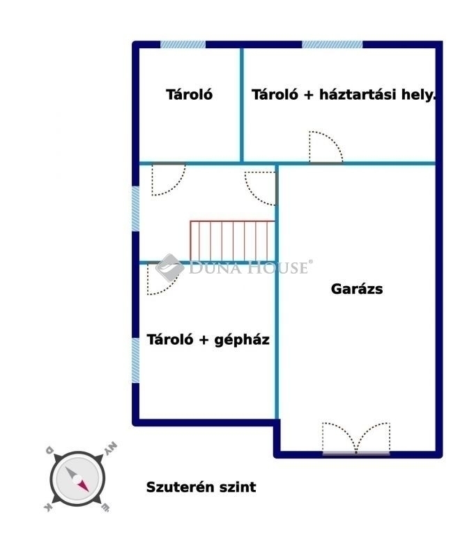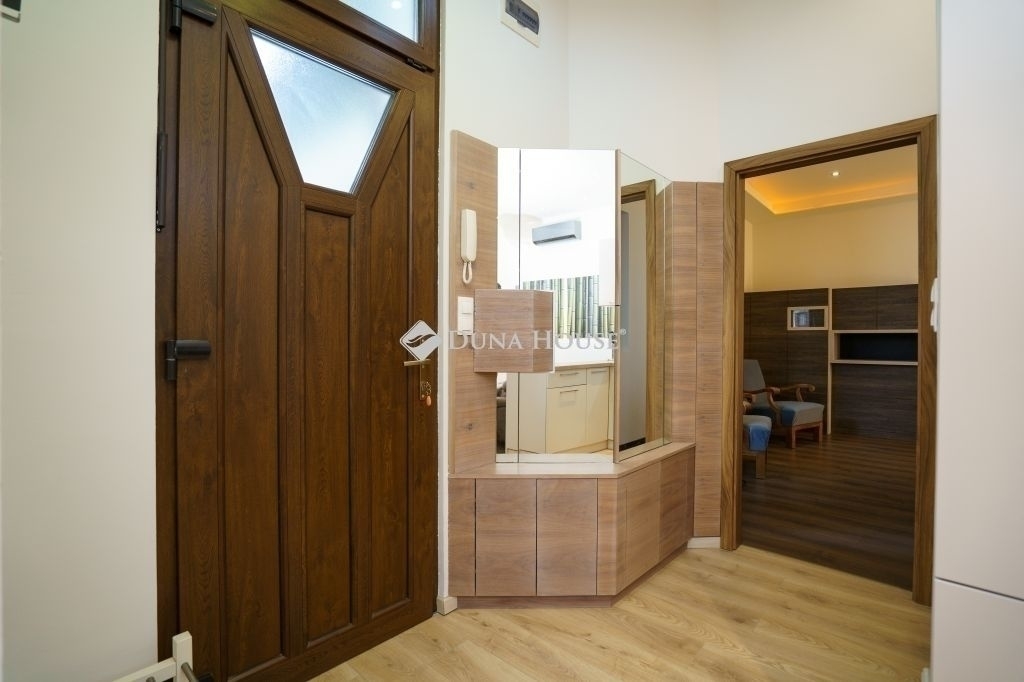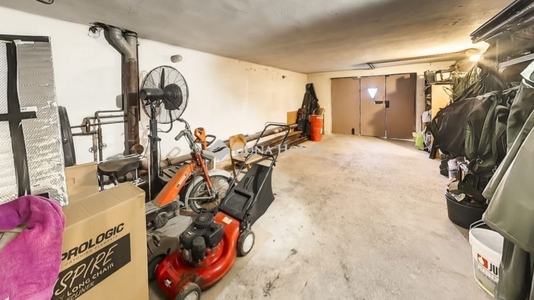 A lakáshoz tartozik még a félszuterén szint 94 nm területe, ami magába foglalja a garázst, gépházat, háztartási helyiséget és egy tárolót, közlekedőt.