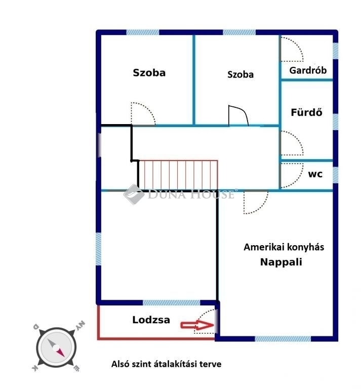 Ezt könnyen lehet 2 szoba, amerikai kopnyhás nappali elsoztásra alakítani.