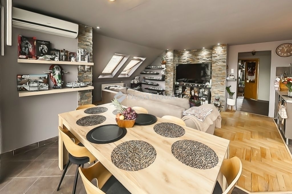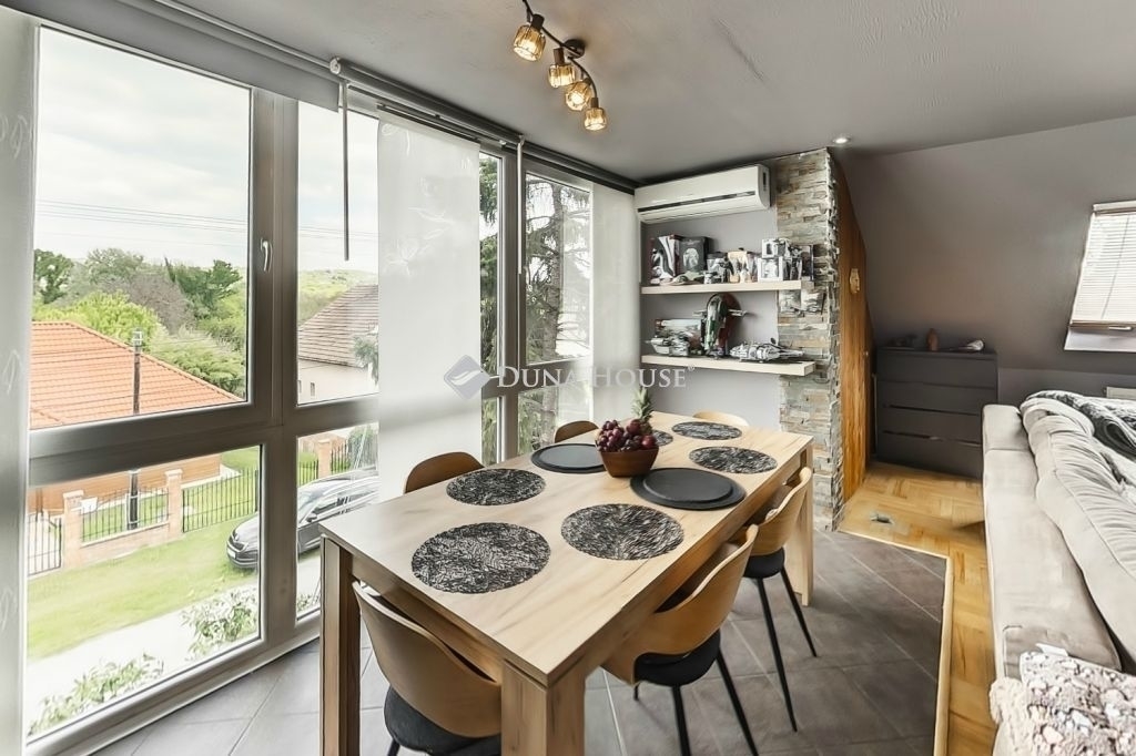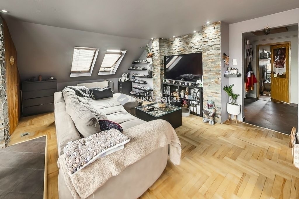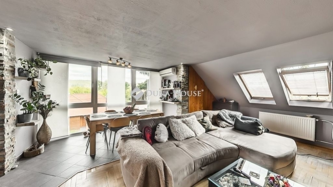 ELADÓ EGY EMELETI, 95 NM LAKÁS, GARÁZZSAL, TÁROLÓVAL ÉS ZÖLD KERTTEL!Budapest mindössze 20 perc autóval vagy tömegközlekedéssel (busz, vonat néhány perc sétára)Csendes környék, barátságos szomszédokIskolák, óvodák, boltok, orvos 10 perces sétáraFóti-tó és Somlyó hegy pár perc gyalog tökéletes kirándulási lehetőségAz amerikai konyhás nappali ablakokból pazar kilátás nyílik a Somlyóra!A házról:Téglaépület (1981), több felújításon esett át (2000: teljes felújítás, 2010: tetőcsere és 15 cm-es külső szigetelés)2 szintes + szuterénszint + garázsA lakás:Nettó 95 m² alapterület3 szoba + amerikai konyhás nappali + fürdőszoba + külön WCMűanyag nyílászárók, klíma, beépített szekrényekVegyes tüzelésű kazán és gázbojlerA lakáshoz tartozik még a szuterén szinten egy 40 nm-es garázs és mögötte egy 18 nm-es tároló ahol a gépészet is helyet kapott.A zöld kertnek is 200 nm-es része a lakáshoz tartozik, ahol még egy fúrt kút is segít a locsolásban. Mindezekről egy ügyvéd által készített, fölhivatalhoz beadott használati megosztás dokumentum rendelkezik. A fogyasztás mérők önállóak.Az ingatlan hitelképes és CSOK képes és megfelel az Otthon Start programnak is.