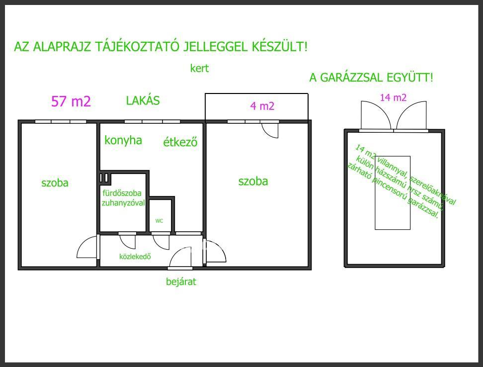 HAJDÚBÖSZÖRMÉNYBEN RENDKÍVŰL JÓ HELYEN ELADÓ, egy 57 m2-es magas földszinti kert kapcsolatos. erkélyes lakás, 14 m2 szerelő aknás garázzsal pince tárolokkal.
