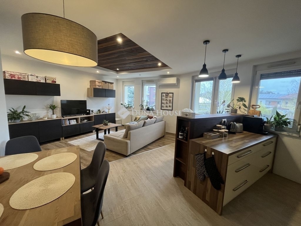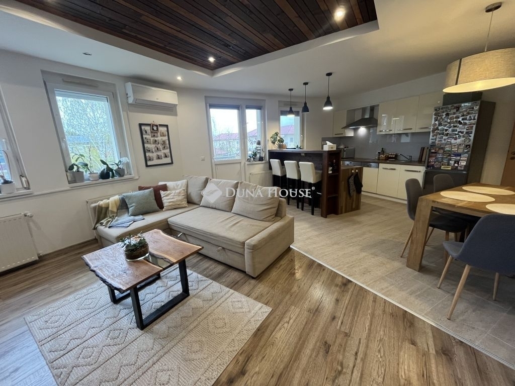 Eladó gyönyörűen felújított lakás Gödön, az Oázis lakóparkban.Göd egyik csendes, nyugodt részén kínálunk megvételre egy 56 m²-es, 2 szobás, erkélyes lakást, zárt kocsibeállóval az Oázis lakóparkban.Az ingatlan praktikus elosztású, jól élhető terekkel rendelkezik:-Amerikai konyhás nappali-1 külön nyíló szobaA lakás teljes körű, igényes felújításon esett át, így új tulajdonosának azonnal költözhető, további ráfordítást nem igényel.Főbb jellemzők:2005-ben épült, szigetelt társasház12 m²-es zárt udvari kocsibeállóalacsony közös költség: 14.640 Ft/hóklímaberendezésredőny és szúnyogháló minden nyílászárónElhelyezkedés, közlekedés:buszmegálló kb. 2 perc sétáravasútállomás kb. 15-20 percA lakás világos, jól kihasználható, és több szempontból is kiváló választás:ideális saját otthonnakhosszú távú kiadásra is kifejezetten alkalmasAirbnb / rövid távú kiadás céljára is tökéletesAz ingatlan az Otthon Start program keretében is megvásárolható.