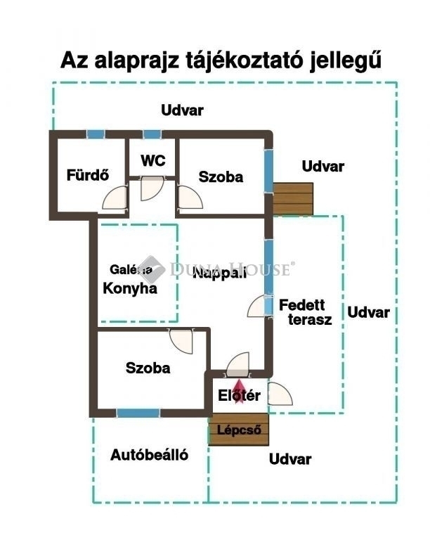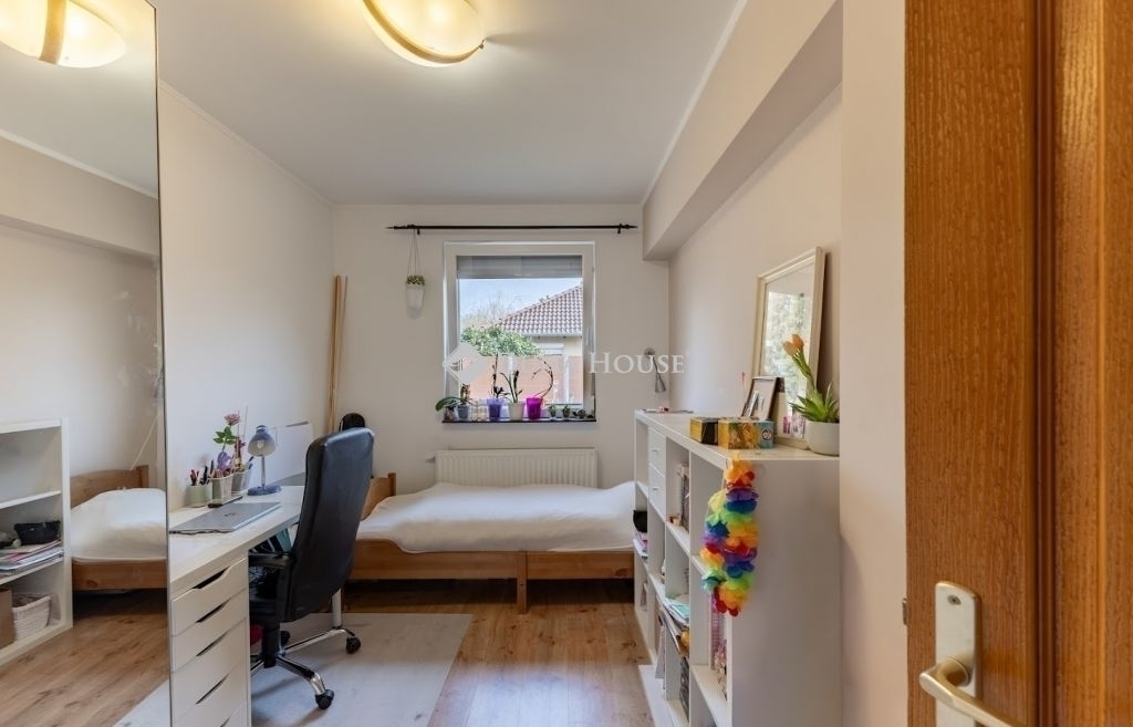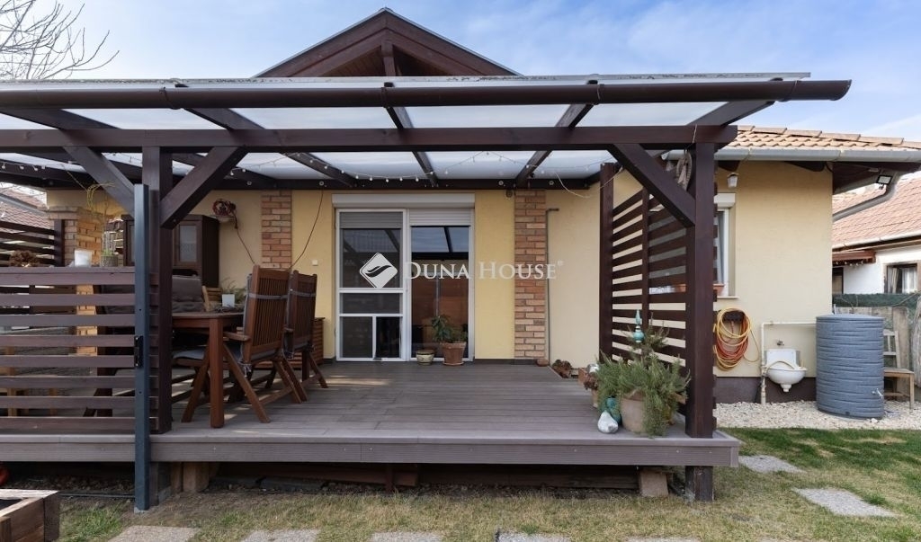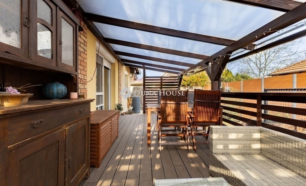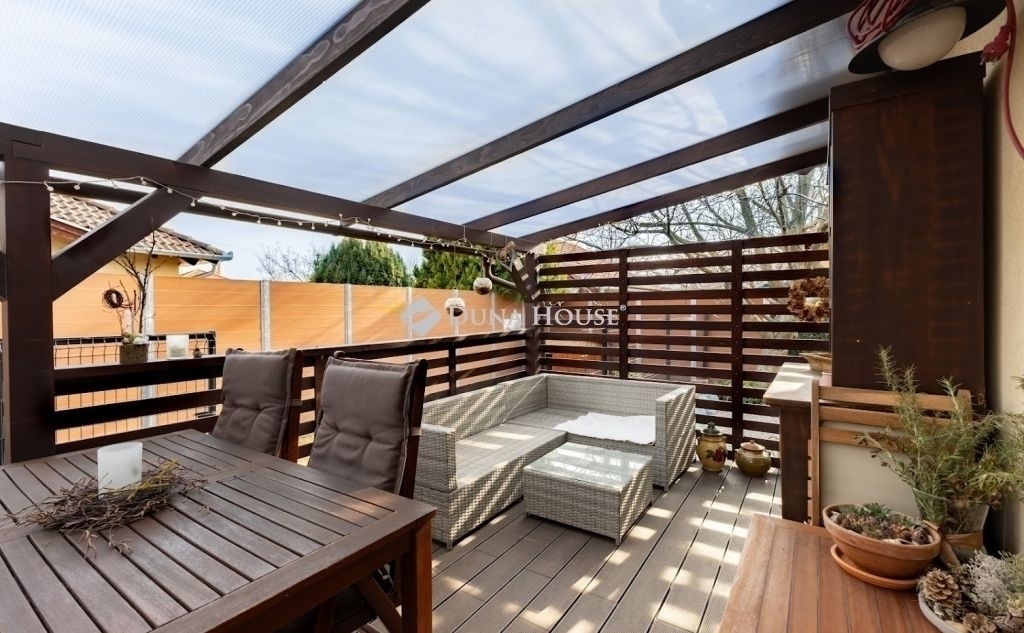 A nappaliból közvetlen kijárat vezet a 20 nm-es fedett teraszra, valamint a 68 nm-es kertbe, amely kívülről is megközelíthető. Az ingatlan saját használatú, rendezett, növényekkel beültetett kertrésszel rendelkezik, amely ideális helyszíne lehet családi rendezvényeknek.