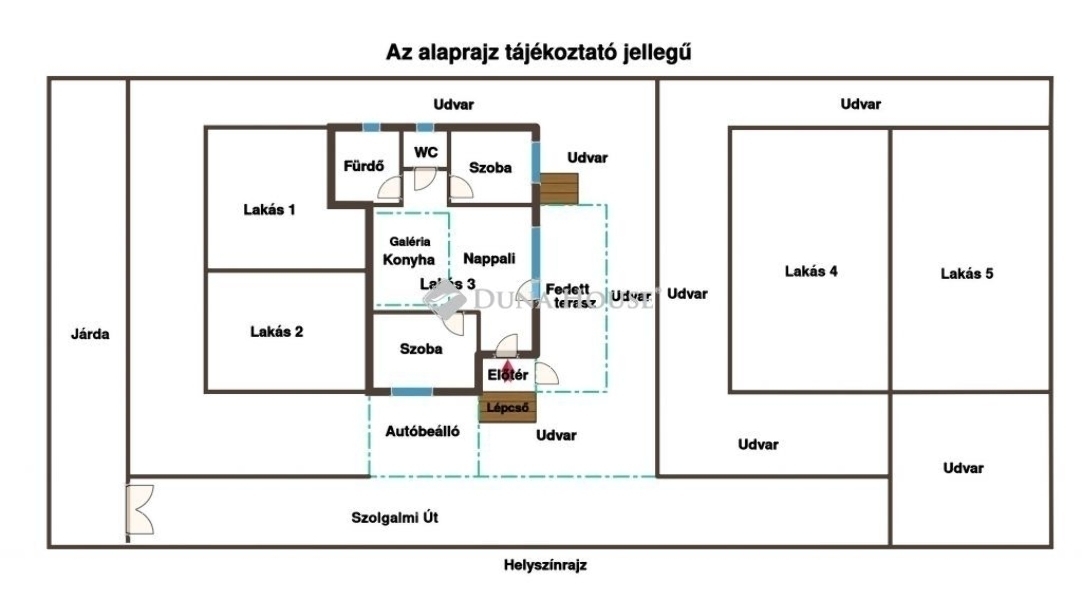 A felépítmény 2008-ban épült beton alapra, tégla szerkezettel, fa födémmel, cserép tetővel, mediterrán stílusban. A födém 15 cm üveggyapot, a homlokzat pedig 5 cm vastag polisztirol szigetelést kapott. A társasházzá alakult közösség összesen hat lakásból áll, két külön épületegységben, épületenként három-három ingatlannal. Az eladó lakás az utcától elektromos kapuval határolt, világítással ellátott szolgalmi úton haladva közelíthető meg.