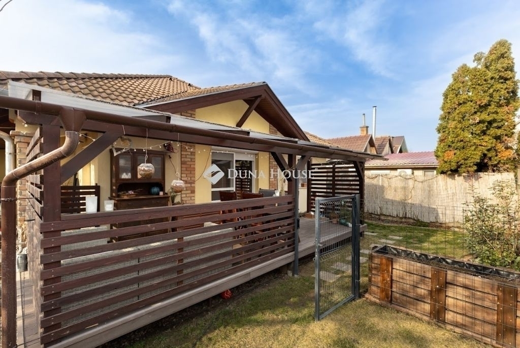 Eladó Gyömrő Erzsébettelepi részén, csendes, kertvárosi utcában egy 60 nm-es, 1+2 fél szobás, egyszintes ház, álló galériával, fedett autóbeállóval és kizárólagos használatú saját kerttel.