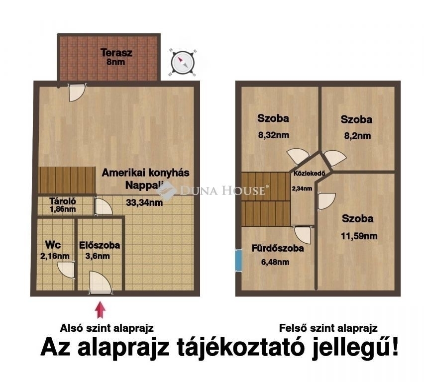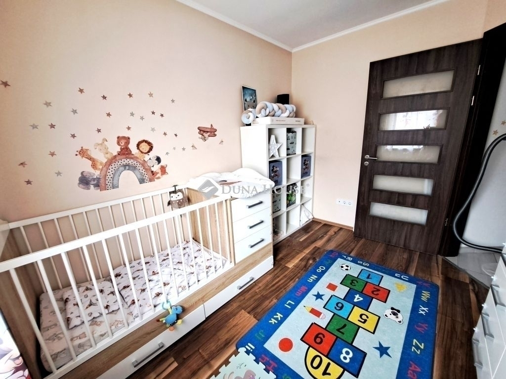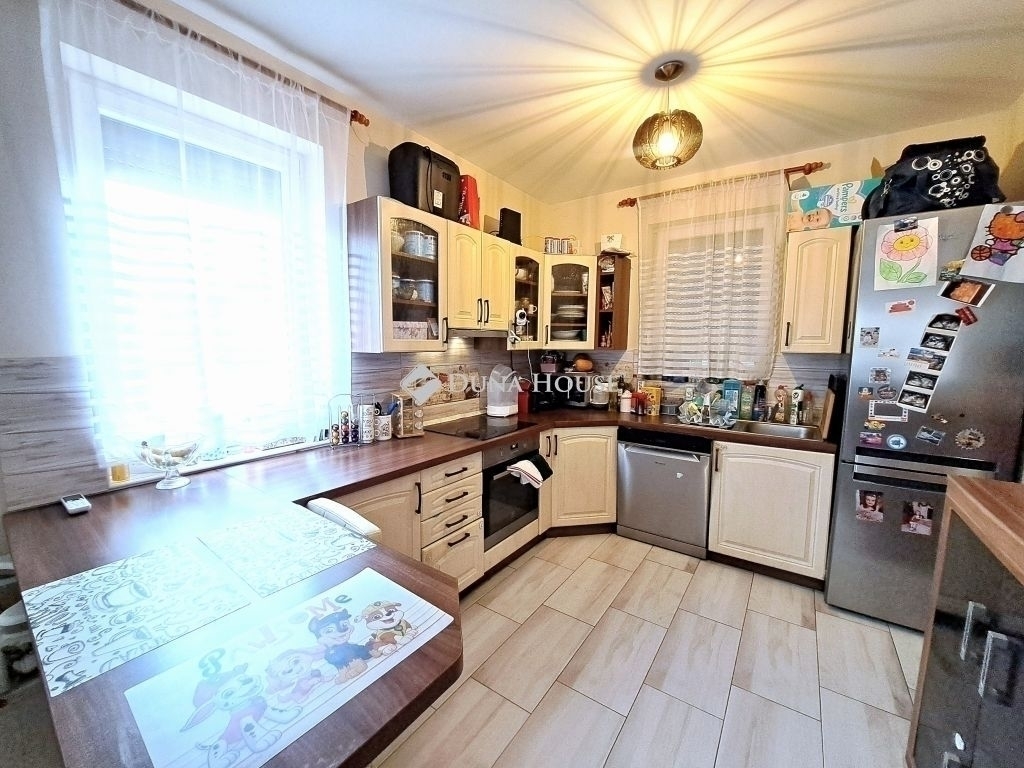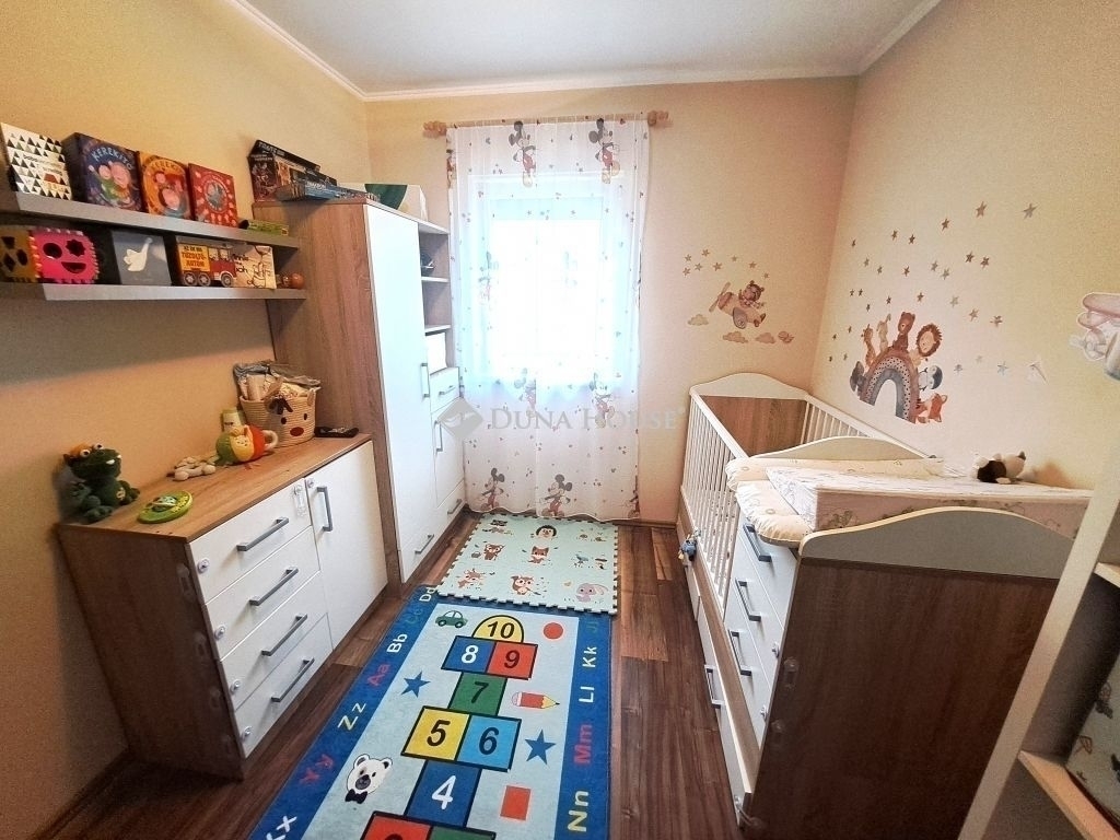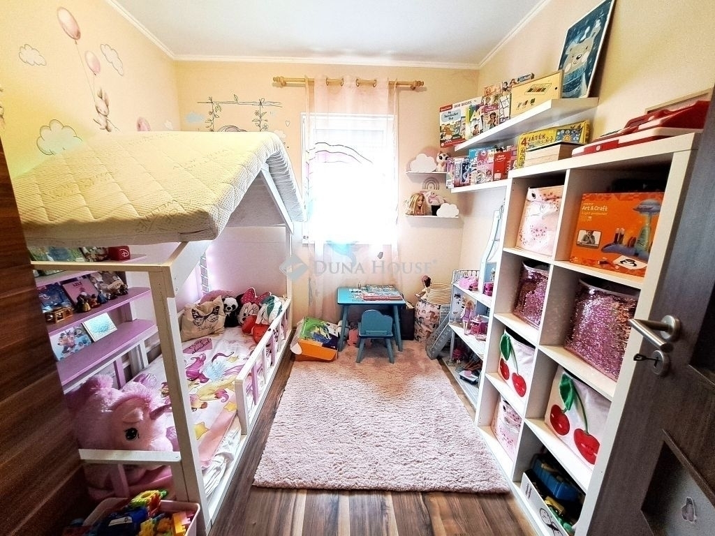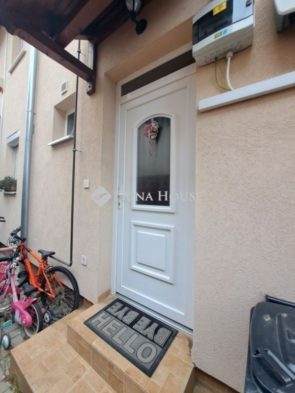 Modern, kétszintes otthon saját kerttel lakóparki környezetbenEladó egy 2018-ban épült, kétszintes társasházi lakás rendezett, csendes lakóparki környezetben, jó szomszédsággal és kiváló infrastruktúrával.Az ingatlan tökéletes választás családoknak vagy azoknak, akik a városi kényelemről nem szeretnének lemondani, de fontos számukra a nyugodt, zöld környezet. A lakás alkamas támogatott hitelre, CSOK-ra. Főbb jellemzők:**Lakóterület: 77 m² + 8 m² nyitott terasz**Építés éve: 2018**Fűtés: gázcirkó, padlófűtés**Korszerű megoldások: napelem rendszer, légkondicionáló**Nyílászárók: korszerű műanyag**Saját, elkerített kert terasszal**Jó elosztás, tágas terek, modern megoldásokHelyiségek elosztása:**Földszint:* Nappali + amerikai konyha: 33,34 m² (ÉK-i tájolás)* Előszoba: 3,6 m²* WC: 2,16 m²* Tároló: 1,86 m²* Nyitott terasz: 8 m² közvetlen kijárattal a kertbe**Emelet:* Szoba 1: 8,2 m²* Szoba 2: 8,32 m²* Szoba 3: 11,59 m²* Fürdő WC-vel: 6,48 m²* Közlekedő: 2,34 m²Miért érdemes Gyömrőt választani?**Budapest közelsége autóval és vonattal is gyorsan elérhető (kb. 30 perc a belváros)**Fejlődő, biztonságos kisváros barátságos közösséggel**Gyömrői Tófürdő és több zöldterület a közelben ideális kikapcsolódásra**Kiváló infrastruktúra: iskola, óvoda, orvosi rendelő, gyógyszertár, üzletek, piac**Kulturális és sportlehetőségek aktív közösségi élet, családbarát rendezvényekA lakás családbarát, lakóparki környezetben található, óvoda és iskola is könnyen elérhető.A tömegközlekedés és bevásárlási lehetőségek a közelben, így a mindennapi élet rendkívül kényelmes.Miért érdemes megnézni?Ez az ingatlan a modern technika és a kényelmes családi élet tökéletes egyensúlya: energiatakarékos, praktikus elrendezésű, és egy kis kerttel is rendelkezik, ami ritkaság ebben a kategóriában.Szeretné élőben is megtapasztalni a lakás hangulatát? Keressen bizalommal, és egyeztessünk időpontot megtekintésre!