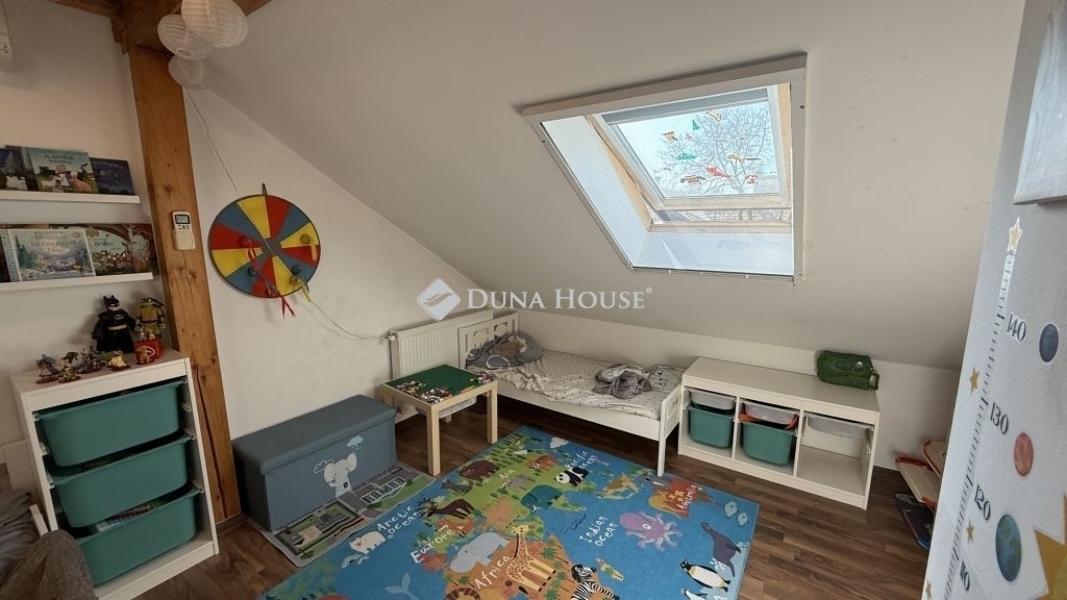 Tetőtér: 2 db külön nyíló hálószoba tetősík ablakokkal, nappalira néző, fa burkolatú galéria.