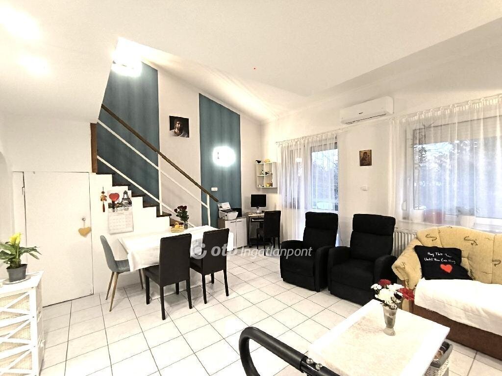 Új tulajdonosát keresi Vizivárosban egy belső két szintes, 103 m2-es, 3 szoba+ nappalis, kiváló állapotú, tehermentes sorházi lakás. Csendes utcában található, belső udvarra néző lakás, az Audi iskolához közel. Az ingatlan 2008-ban épült, 3 éve újították fel. (Festés, burkolatcsere, klimatizálás, bútorok.) Az épület hőszigetelt, 3 réteg üvegezésű nyílászárók tartják kint a hideget és a meleget.