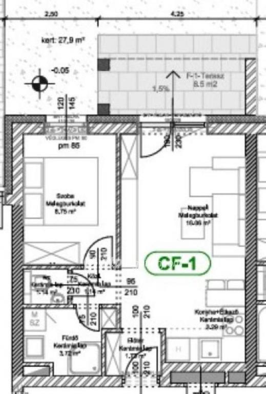 Az ajánlott földszinti lakás 77 m2 terasszal és kertkapcsolattal rendelkezik. Az ingatlanban található egy amerikai konyhás nappali, 3 szoba, valamint 2 fürdő + WC.