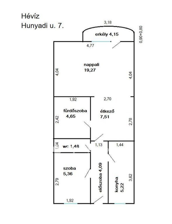 nappali + félszoba, konyha, külön fürdőszoba WC -vel, valamint egy külön mellékhelyiség, ami a mindennapi komfort szempontjából kifejezetten előnyös és ritka a piacon.
