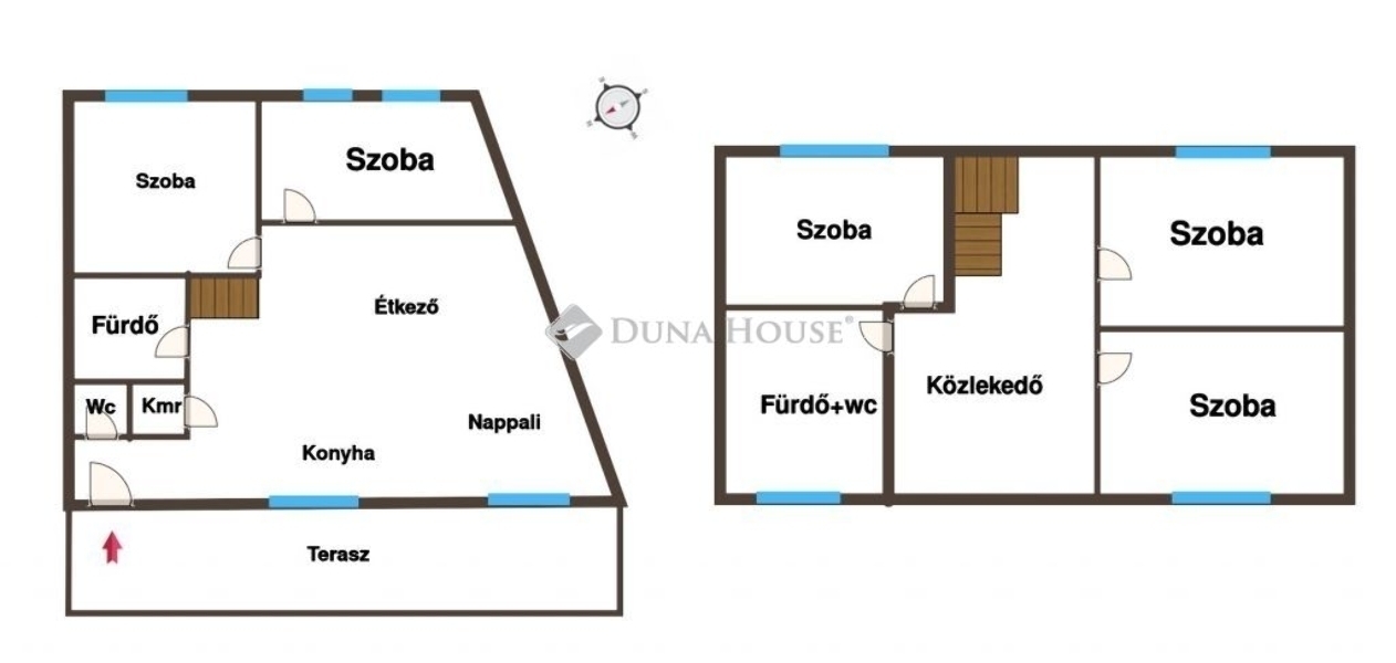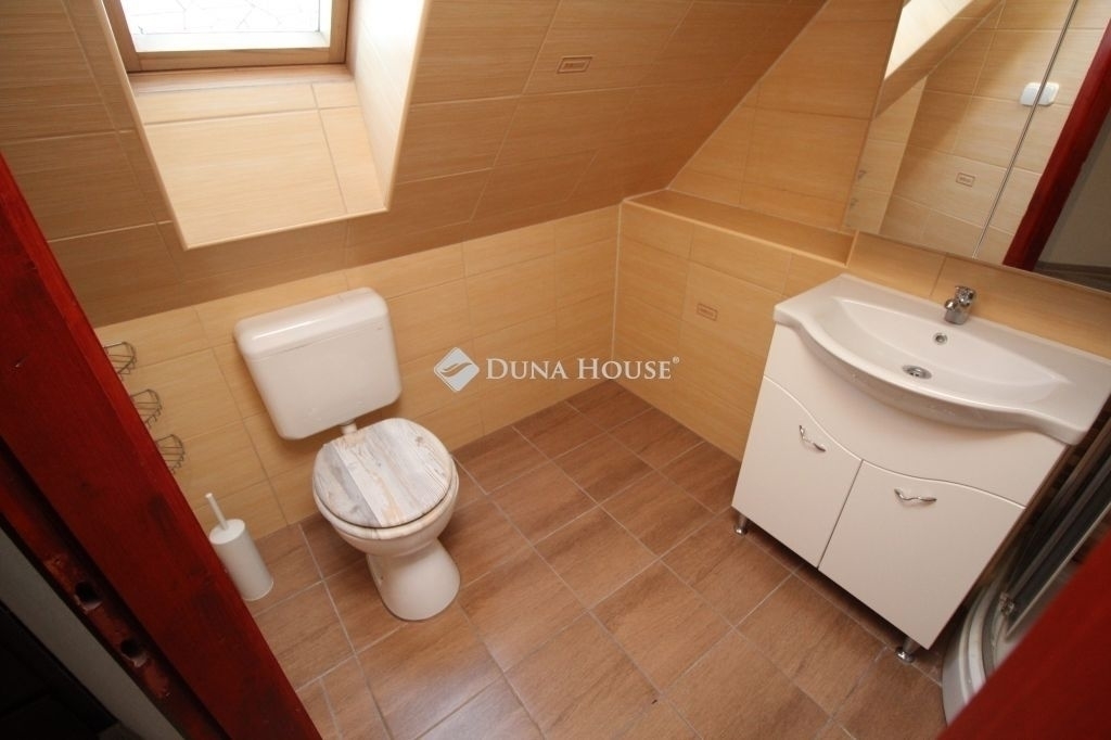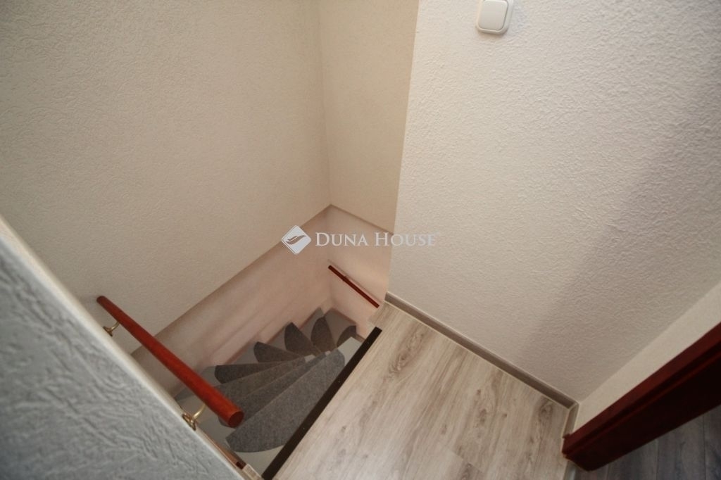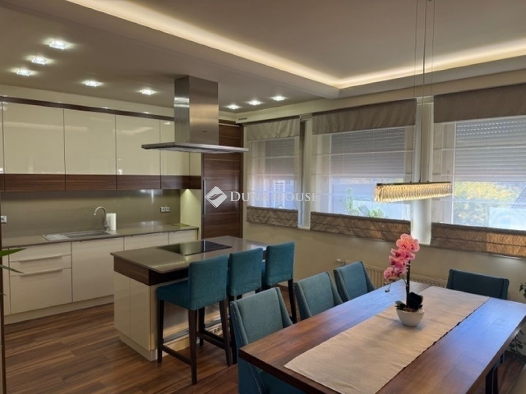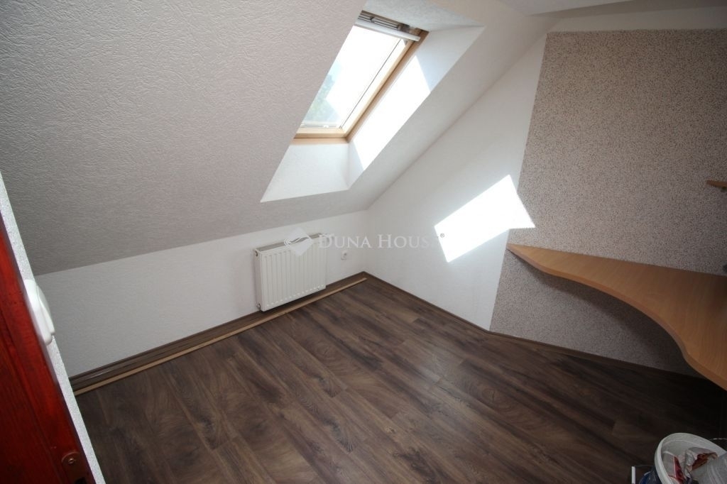 A lakás fiatal építésű, a harmadik emeleten található. Lent a nappali mellett két hálószoba, fent a tetőtérben három további szoba kapott helyet. Két fürdőszoba, beépített, gépesített konyha és 9 m²-es terasz teszi kényelmessé a mindennapokat.