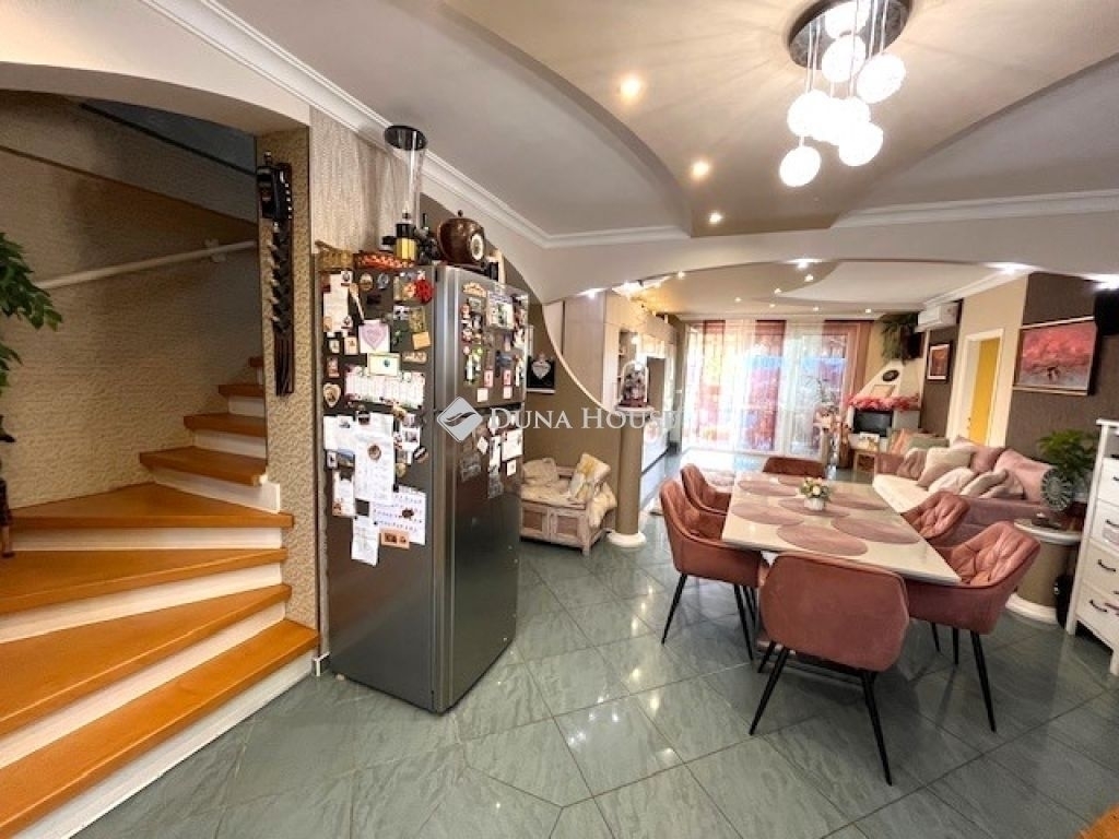 Kecskemét legjobb városrészében, a VACSIKÖZBEN kínálok eladásra egy 140 nm-es, PRÉMIUM minőségű, nappali + 5 szobás SZÉP lakást!Jöjjön el, nézze meg, bele fog szeretni ebbe a csodálatos otthonba!A tulajdonosok sok-sok szeretettel minden részletét alaposan átgondolva alakították ki!Jellemzők:-4 lakásos, szigetelt társasház-lakásosn belül kétszintes -2. emelet + tetőtér beépítés (100 nm az alsó szint + 40 nm a tetőtér)-amerikai konyha-nappali + 5 szoba-napfényes, tágas terek-cirkófűtés, padlófűtés + radiátorok -6,5 KW napelem, mely által 0 Ft az áramdíj-3 db hűtő-fűtő klíma-8 nm kellemes terasz árnyékolóval a csendes, belső udvar felé-közös használatú udvar -2 parkolóhely a ház előtt-riasztóberendezés-rengeteg beépített szekrény a lakás összes helyiségében-épített nagyméretű tusolókabinos fürdőszoba, külön WC-új VELUX műanyag ablakok-elektromos fémredőnyök-a tetőtérben gardrób, beépített szekrények kialakítása a ferde falak mentén-nappaliban elefántcsontszínű egyedileg gyártott gyönyörű szekrénysor-különleges kialakításű menyezeti díszítések, gipszstukkók, energiatakarékos 67 db spotlámpávalA belvárosba a gyors bejutás több útvonalon is lehetséges.Iskola, óvoda, buszmegálló, élelmiszerüzlet pár perc távolságra található.Ajánlom nagycsaládok számáraa sok szoba miatt.A közös udvarban található játszótér ideális a gyerekeknek, emellett a felnőttek számára grillpartik és közös programok megrendezésére is alkalmas.Ha felkeltette ez a remek ingatlan az érdeklődését, hívjon bizalommal!Az ingatlan kizárólag előzetes egyeztetés után tekinthető meg!