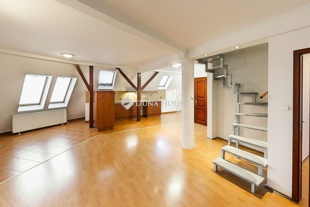 Kecskemét Belvárosában eladó egy tágas, világos, 98 m²-es, kétszintes téglalakás. Az ingatlan nappaliból és 5 külön szobából áll, ideális nagycsaládosoknak vagy azoknak, akiknek fontos a sok élettér.A lakás fiatal építésű, a harmadik emeleten található. Lent a nappali mellett két hálószoba, fent a tetőtérben három további szoba kapott helyet. Két fürdőszoba, beépített, gépesített konyha és 9 m²-es terasz teszi kényelmessé a mindennapokat.Házközponti fűtés van egyedi mérővel, két klíma, VELUX tetőablakok és fa nyílászárók gondoskodnak a kellemes hőérzetről. A lakáshoz két zárt udvari autóbeálló tartozik.Ha belvárosi, jól kihasználható, mégis nyugodt otthont keresel, ez a lakás remek választás lehet.