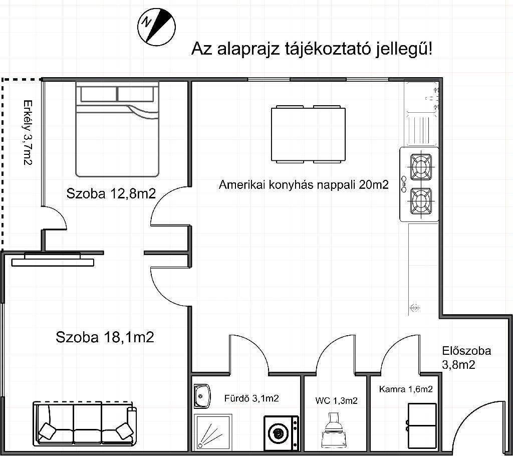 A lakás bútorozottan eladó. A beépített konyhabútorhoz vadonatúj gépek, mosogatógép, gázfőzőlap és sütő tartozik. A fűtésről gázkonvektor gondoskodik.