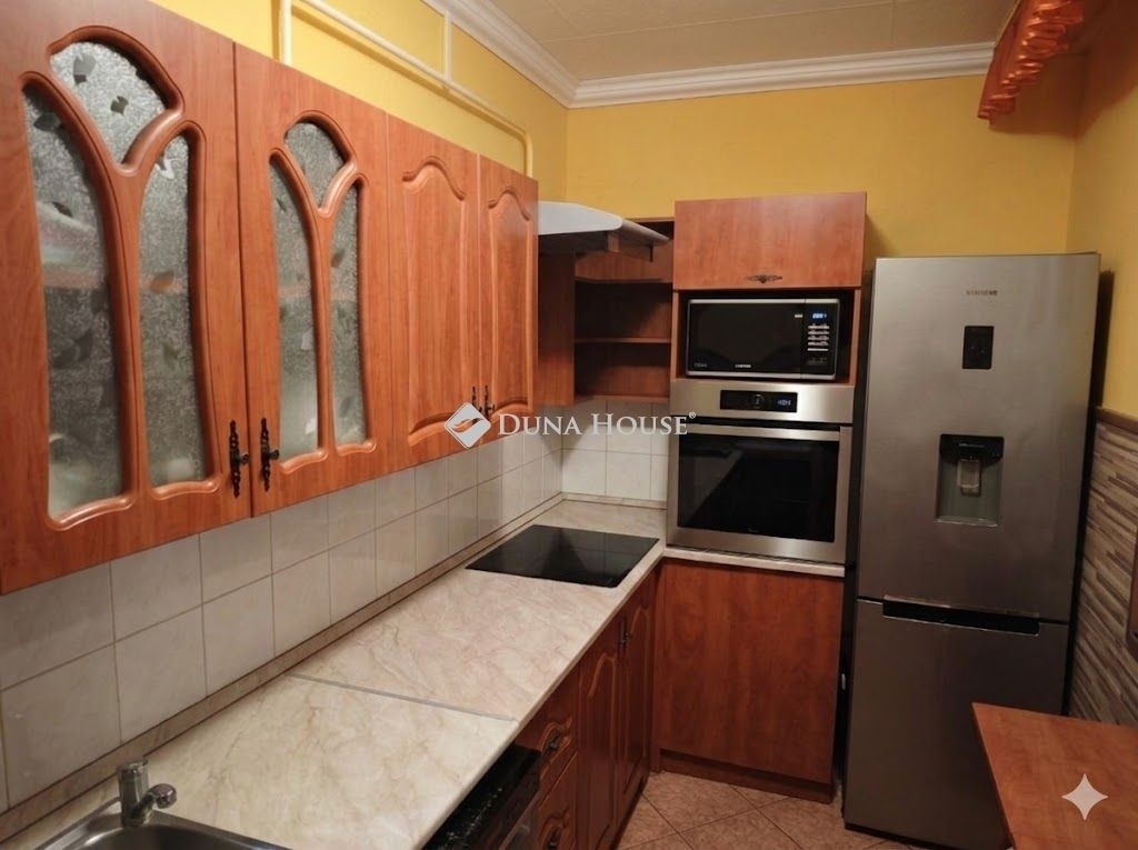 Az ár részét képezi az újszerű konyhabútor, beépített főzőlappal és sütővel együtt.