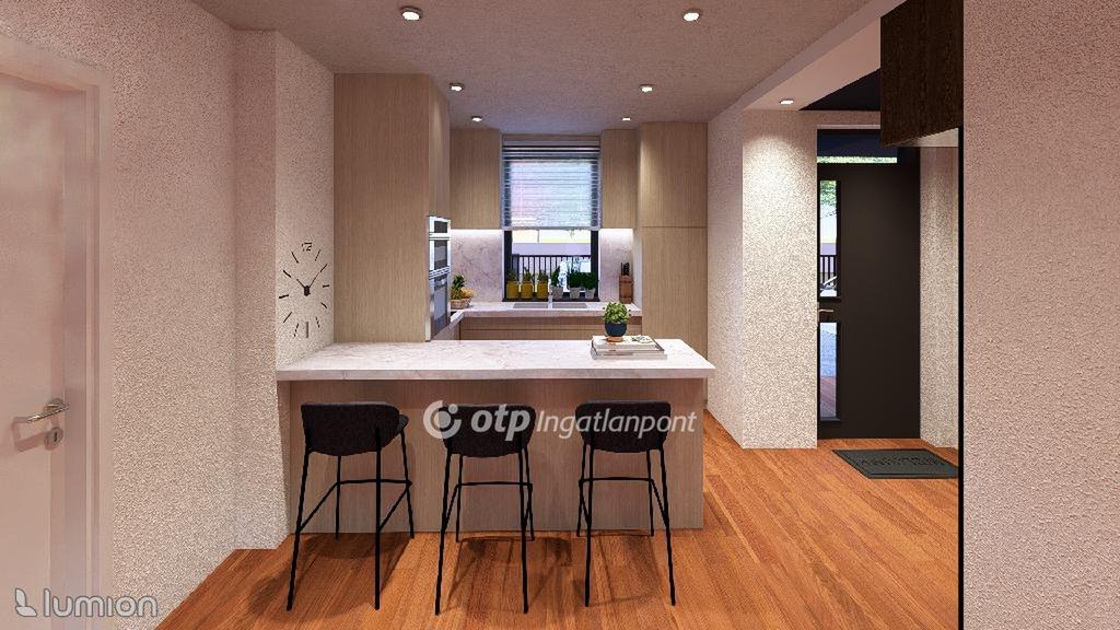 Kőröshegyen a völgyhíd lábánál eladásra kínálunk egy 65 m2 alapterületű, modern, újépítésű társasházi lakást, a Balatontól 5 km-re. A földszinten tágas, világos amerikai konyhás étkező és nappali kerül kialakításra, továbbá egy mosdó és egy tároló helyiség is helyet kap. A tetőtérben két hálószoba és egy kádas fürdőszoba található. Az épület 30-as Porotherm téglából, vasbeton födémmel és alaplemezzel készül, 10 cm homlokzati, valamint 40 cm tetőszigeteléssel, így kiemelkedően energiahatékony otthont kínál, 3 rétegű, modern színezett nyílászárókkal. A fűtést hőszivattyús padlófűtés biztosítja, a nyári forróságban pedig klímaberendezés ad enyhülést. A lakások csak a lépcsőházi falnál és az előszoba egyik falánál kapcsolódnak egymáshoz, így a zajszigetelés és a privát tér maximálisan biztosított. A lakáshoz saját első- és hátsókert, valamint autóbeálló tartozik, melyek összmérete 167 m2. Az alaprajzon 4. számú lakás. Budapest egy óra autózással elérhető. A csendes szórakozás lehetősége is adott, ugyanis 400 m-re van az ingatlantól egy horgásztó. Ajánljuk az ingatlant mindazoknak akik a Balatonhoz közel szeretnének lakni, egész évben nyaralni, vagy egy jó befektést keresnek. Az ingatlan alkalmas az Otthon Start Programra.