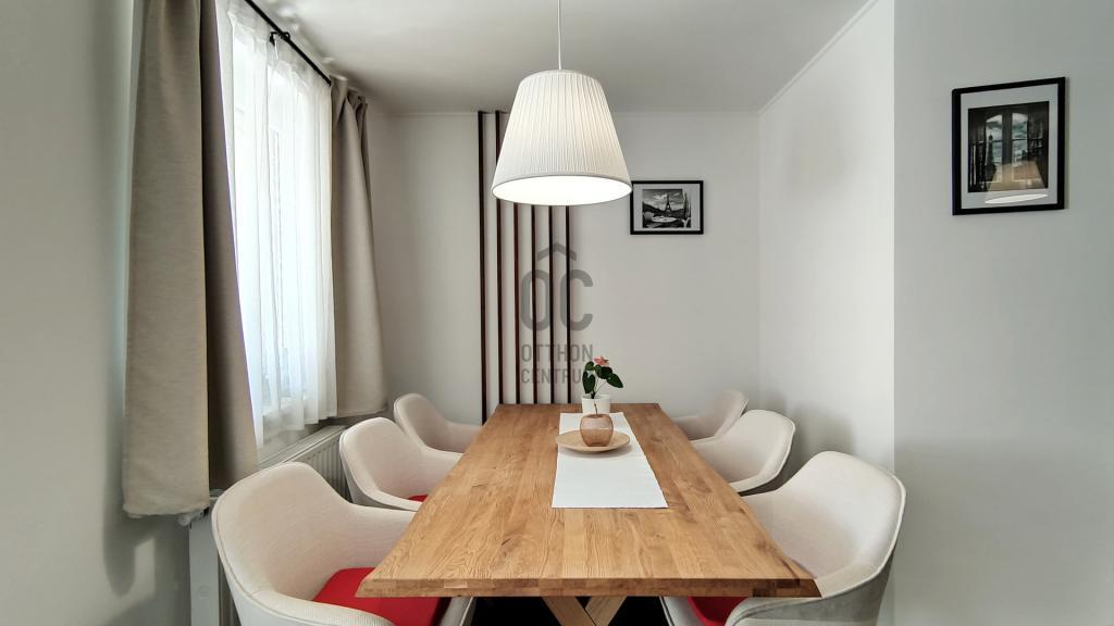 Fedezze fel ezt a különleges lehetőséget Kőszegen, Vas vármegyében, ahol egy frissen felújított, modern lakás várja Önt! Az ingatlan alapterülete 128 négyzetméter, amely három tágas szobát, két fürdőszobát, valamint egy konyhaszigetes amerikai konyhát kínál, ahol a főzés igazi élménnyé válik. A lakás két részre osztható, 2 víz és gázóra található benne. Az ingatlan tulajdoni lapjával a valós nm megegyezik, egy 26 nm garázs garázs tartozik hozzá. A nappali, tökéletes helyszín a családi összejövetelekhez vagy baráti találkozókhoz, hiszen a tágas tér és a világos, nyitott elrendezés mindenki számára kellemes atmoszférát teremt. A lakáshoz tartozik egy 4,4 négyzetméteres terasz és egy 4,47 négyzetméteres erkély, ahol élvezheti a szabadban eltöltött időt, miközben gyönyörködik a környék panorámájában. Az ingatlan állapota kiváló, a fűtés gáz (cirko) rendszerrel működik, amely biztosítja a kényelmes és gazdaságos fűtést a hideg téli hónapokban is. A beépített bútorok és szekrények nemcsak esztétikai szempontból vonzóak, hanem praktikus megoldásokat is kínálnak a tárolásra. Kőszeg központi elhelyezkedése lehetővé teszi, hogy minden fontos szolgáltatás és üzlet könnyen elérhető legyen. A környék ellátottsága kiváló, így a napi szükségletek gyorsan és kényelmesen intézhetők. A tömegközlekedési lehetőségek is kedvezőek, hiszen a város jól kapcsolódik a környező településekhez, így akár munkába járásról, akár kirándulásról van szó, mindig könnyedén elérheti célját. Az ingatlan környezetét a csend és a biztonság jellemzi, így ideális választás lehet családok számára, akik értékelik a nyugodt életformát. Ne habozzon, ha kérdései lennének, vagy szeretné megtekinteni ezt a páratlan ingatlant, bizalommal kereshet minket! Az Ön elégedettsége a legfontosabb számunkra, és szívesen állunk rendelkezésére bármilyen információval az ingatlannal és a környék adottságaival kapcsolatban. Ez a lakás nem csupán egy új otthon, hanem egy életstílus, amelyet érdemes felfedezni! Hibás hirdetés bejelentése