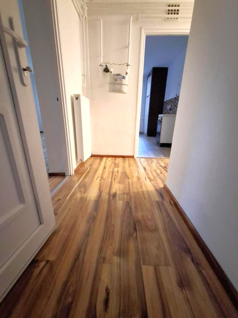 Új burkolatok: Minden helyiségben friss a padlóburkolat, a fürdőben és a külön nyíló WC-ben új, stílusos hidegburkolat és csempe várja.