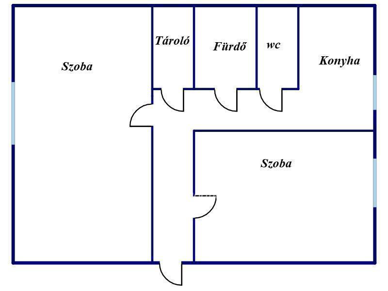 Tágas, külön nyíló szobák praktikus elosztás, jó helykihasználás.