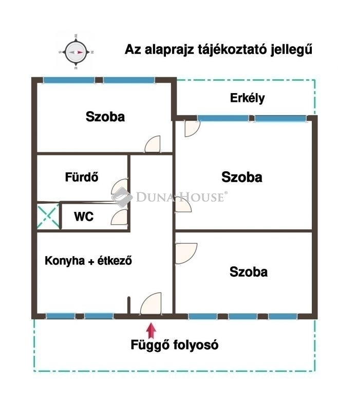 Az ablakok redőnyösek, az ingatlan kelet nyugati fekvésű.