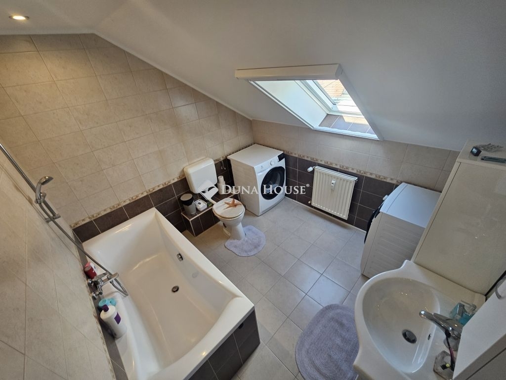 Mosonmagyaróvár egyik legkedveltebb részén, a Lucsony utcában eladó kétszintes lakás saját autóbeállóvalEladásra kínálunk egy 68 m²-es, belső kétszintes, első emeleti lakást Mosonmagyaróvár központ közeli, mégis nyugodt részén. A társasház parkosított, zárt udvarban helyezkedik el, elektromos kapuval és kamerarendszerrel védve. A lakók kényelmét közös, zárható biciklitároló is szolgálja, a lakáshoz pedig saját autóbeálló tartozik, amely benne van az árban.A lakás elosztása:Az alsó szinten amerikai konyhás nappali található gépesített konyhával (sütő, főzőlap, mosogatógép, páraelszívó), külön WC, előszoba, valamint egy 9,15 m²-es erkély elektromos napellenzővel.A felső szinten két hálószoba kapott helyet az egyik gardróbbal, a másik nemrég cserélt Velux ablakokkal. Itt található egy tágas fürdőszoba káddal és WC-vel, illetve a közlekedőn nagyméretű beépített szekrény biztosít extra tárolást.A lakásban minden praktikus részletre gondoltak: lépcső alatti tároló, szúnyoghálók minden ablakon, a felső szinten redőnyök, valamint két hűtő-fűtő klíma (Mitsubishi, Fischer), amelyek egész évben biztosítják a kényelmet.Elhelyezkedés:A mindennapokhoz szükséges minden karnyújtásnyira van: a Termálfürdő, az Egyetem, a Wittmann park, a sétálóutca és üzletek, szolgáltatások legfeljebb 10 perc sétával elérhetők.Ez az ingatlan ideális választás mindazoknak, akik szeretnének egy modern, kényelmes otthont Mosonmagyaróvár egyik legjobb környékén. Emellett kiváló befektetési lehetőség is, hiszen a termálfürdő közelsége miatt a környék rendkívül keresett, ráadásul a társasházban több apartmanlakás is működik, így rövid- és hosszú távú kiadásra egyaránt alkalmas.Vásárolna, de nincs meg rá a megfelelő keret?? Kollégám díjmentes, banksemleges hitelügyintézéssel áll rendelkezésére.Amennyiben Irodánk által kínált CSALÁDI HÁZ vagy bármely, a kínálatunkban található LAKÁS, vagy TELEK felkeltette érdeklődését, hívjon a hét bármely napján a megadott telefonszámon. Hibás hirdetés bejelentése